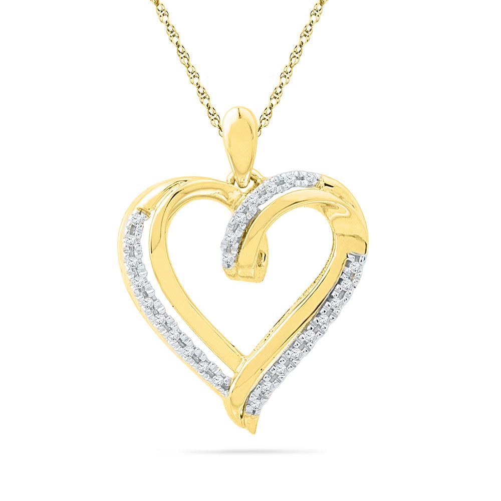 10kt Yellow Gold Womens Round Diamond Heart Pendant 1/10 Cttw