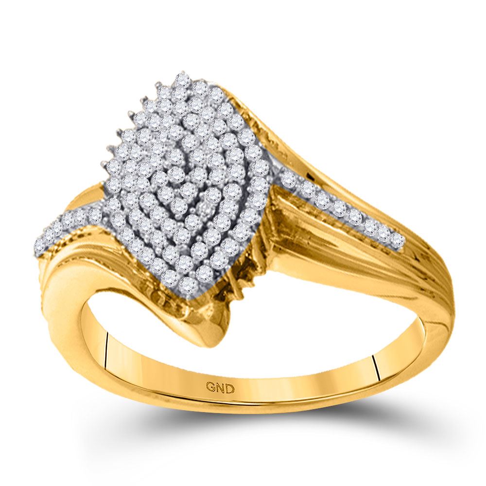 10kt Yellow Gold Womens Round Diamond Oval Marquise-shape Cluster Ring 1/3 Cttw