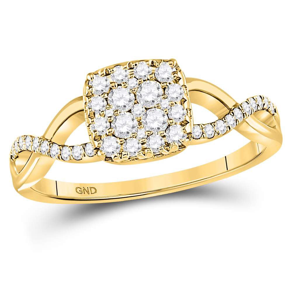 10kt Yellow Gold Womens Round Diamond Rectangle Cluster Bridal Wedding Engagement Ring 7/8 Cttw - Size 10