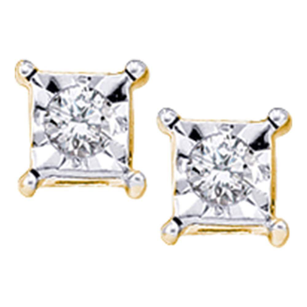 SKU: RB45914 ---- 10kt Yellow Gold Round Diamond Solitaire Square Stud Earrings 1/20 Cttw