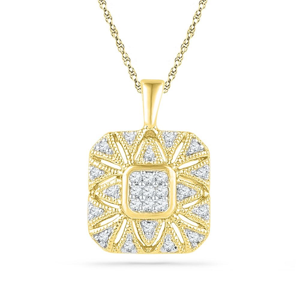 10kt Yellow Gold Womens Round Diamond Square Cluster Pendant 1/6 Cttw