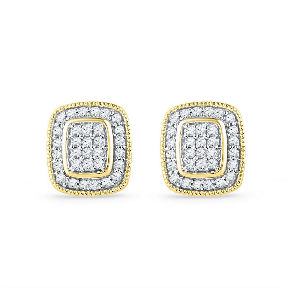 10kt Yellow Gold Round Diamond Square Cluster Stud Earrings 1/4 Cttw