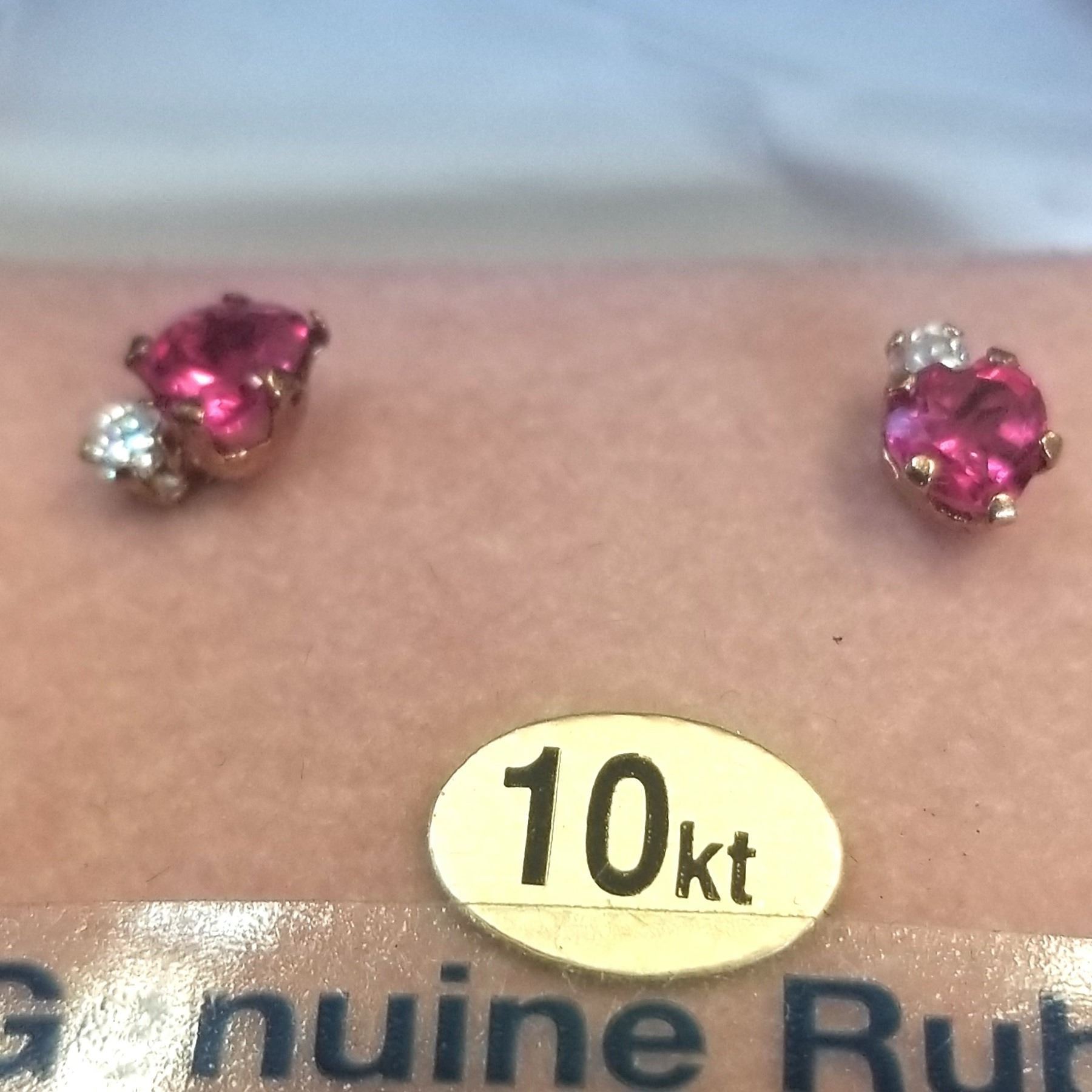 10kt. Yellow Gold Synthetic Ruby & CZ Heart Earrings, 0.78cts