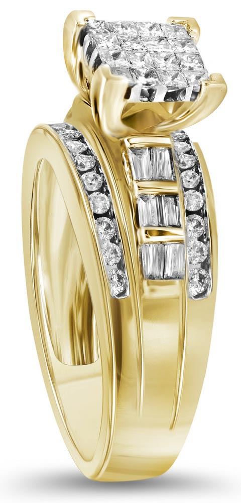10kt Yellow Gold Womens Princess Diamond Cluster Bridal **|**|** 10kt Yellow Gold Womens Princess Diamond Cluster Bridal Wedding Engagement Ring 1/2 Cttw - Size 7.5
