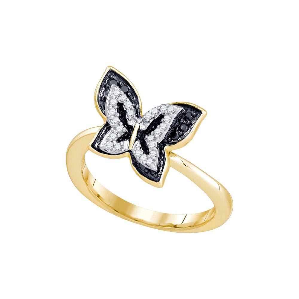 10kt Yellow Gold Womens Round Black Colored Diamond But **|**|** 10kt Yellow Gold Womens Round Black Colored Diamond Butterfly Bug Fashion Ring 1/3 Cttw