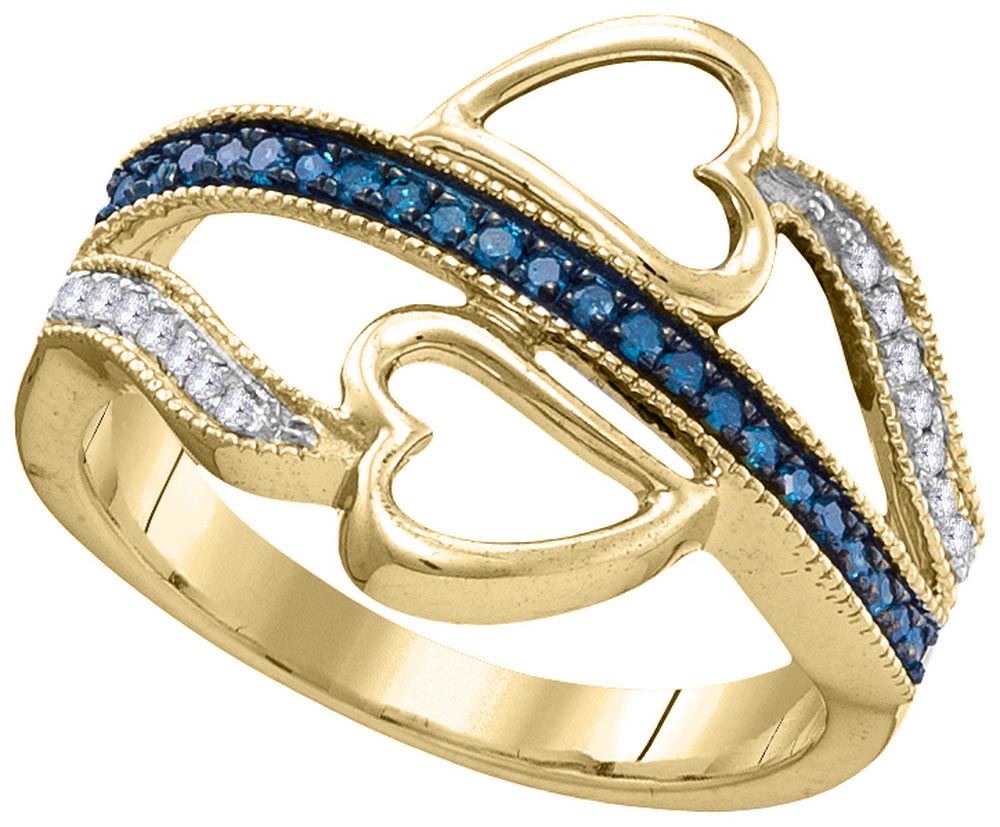 10kt Yellow Gold Womens Round Blue Colored Diamond Doub **|**|** 10kt Yellow Gold Womens Round Blue Colored Diamond Double Heart Love Ring 1/5 Cttw