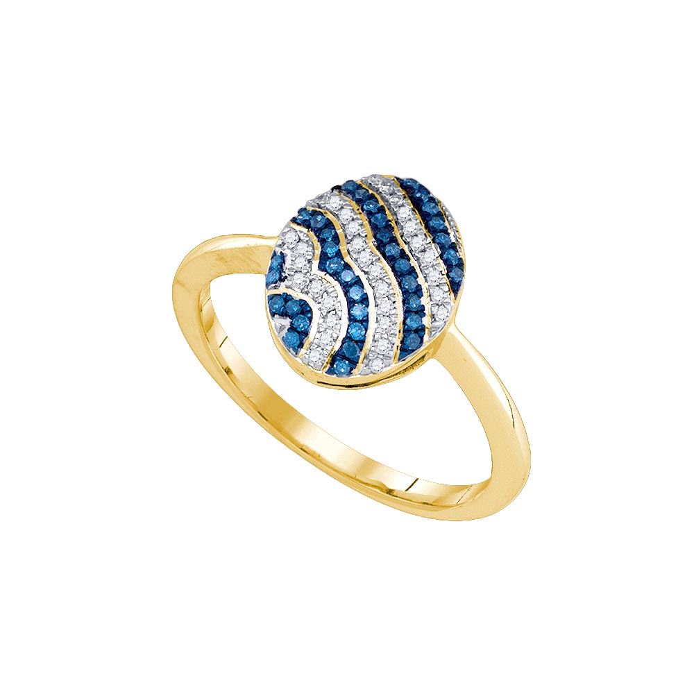 10kt Yellow Gold Womens Round Blue Colored Diamond Stri **|**|** 10kt Yellow Gold Womens Round Blue Colored Diamond Striped Cluster Fashion Ring 1/6 Cttw