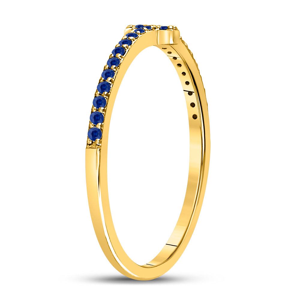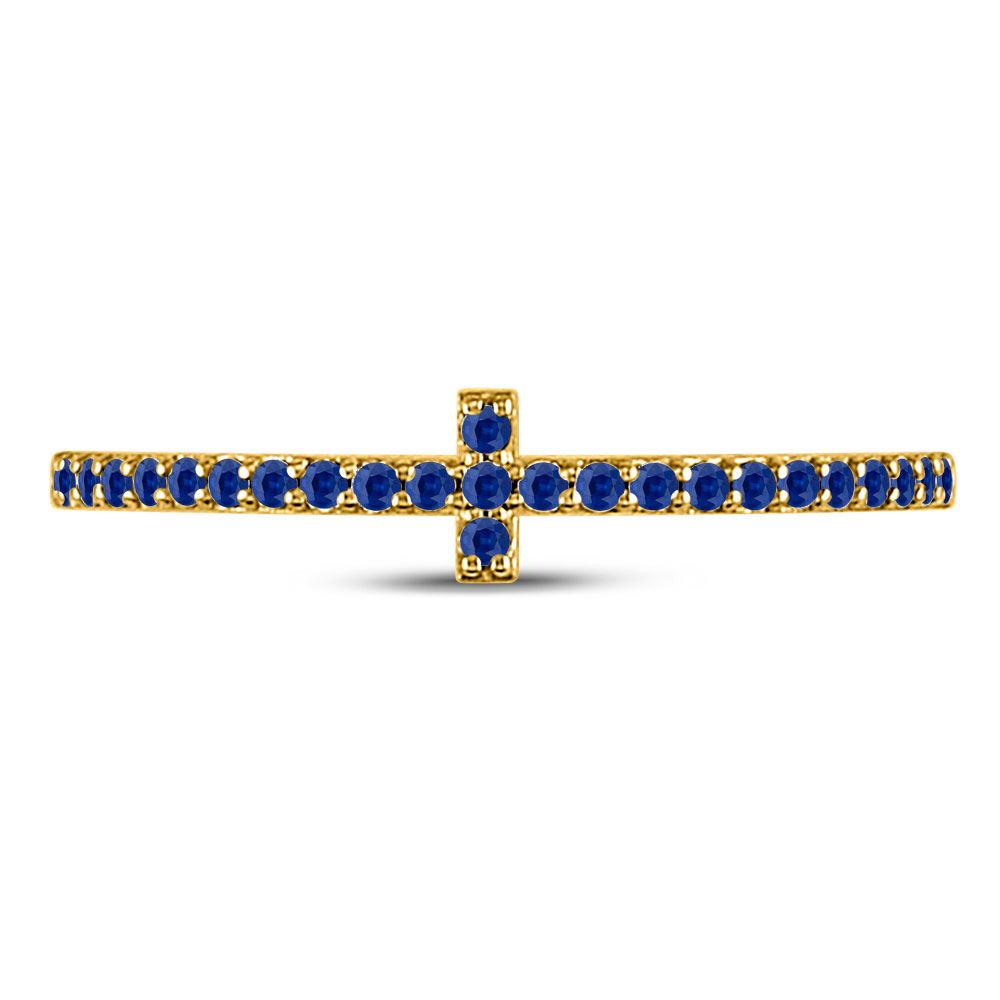 10kt Yellow Gold Womens Round Blue Sapphire Cross Stackable Band Ring 1/6 Cttw