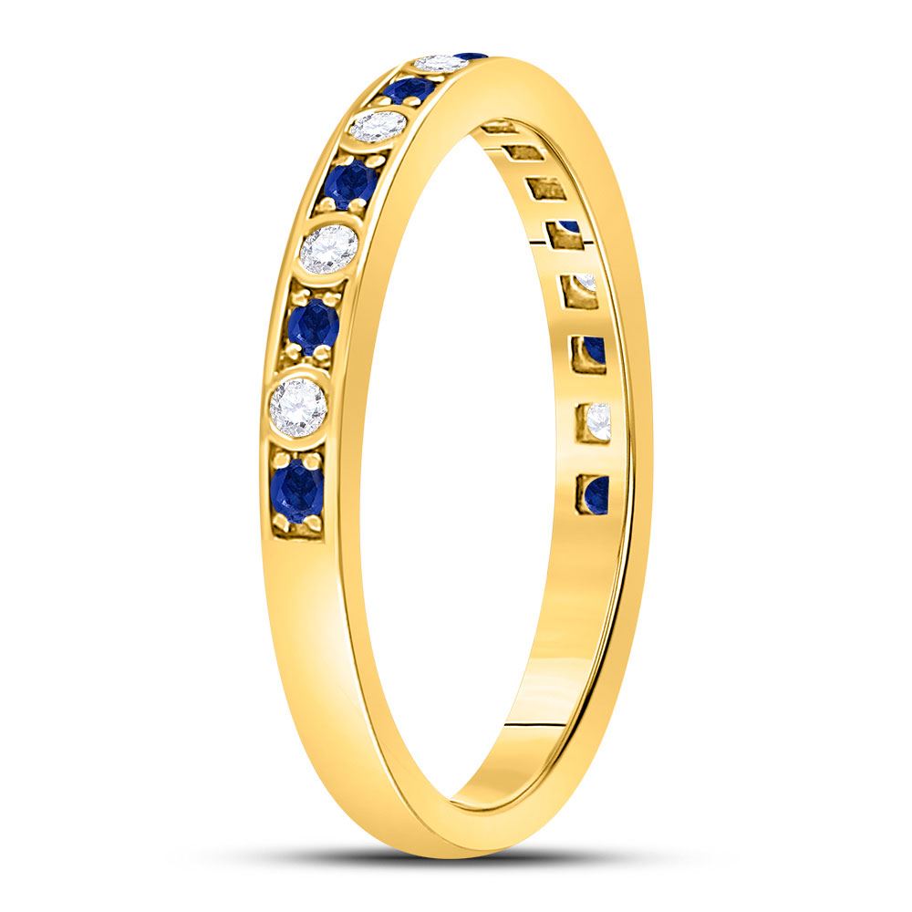 10kt Yellow Gold Womens Round Blue Sapphire Diamond Alternating Stackable Band Ring 1/4 Cttw