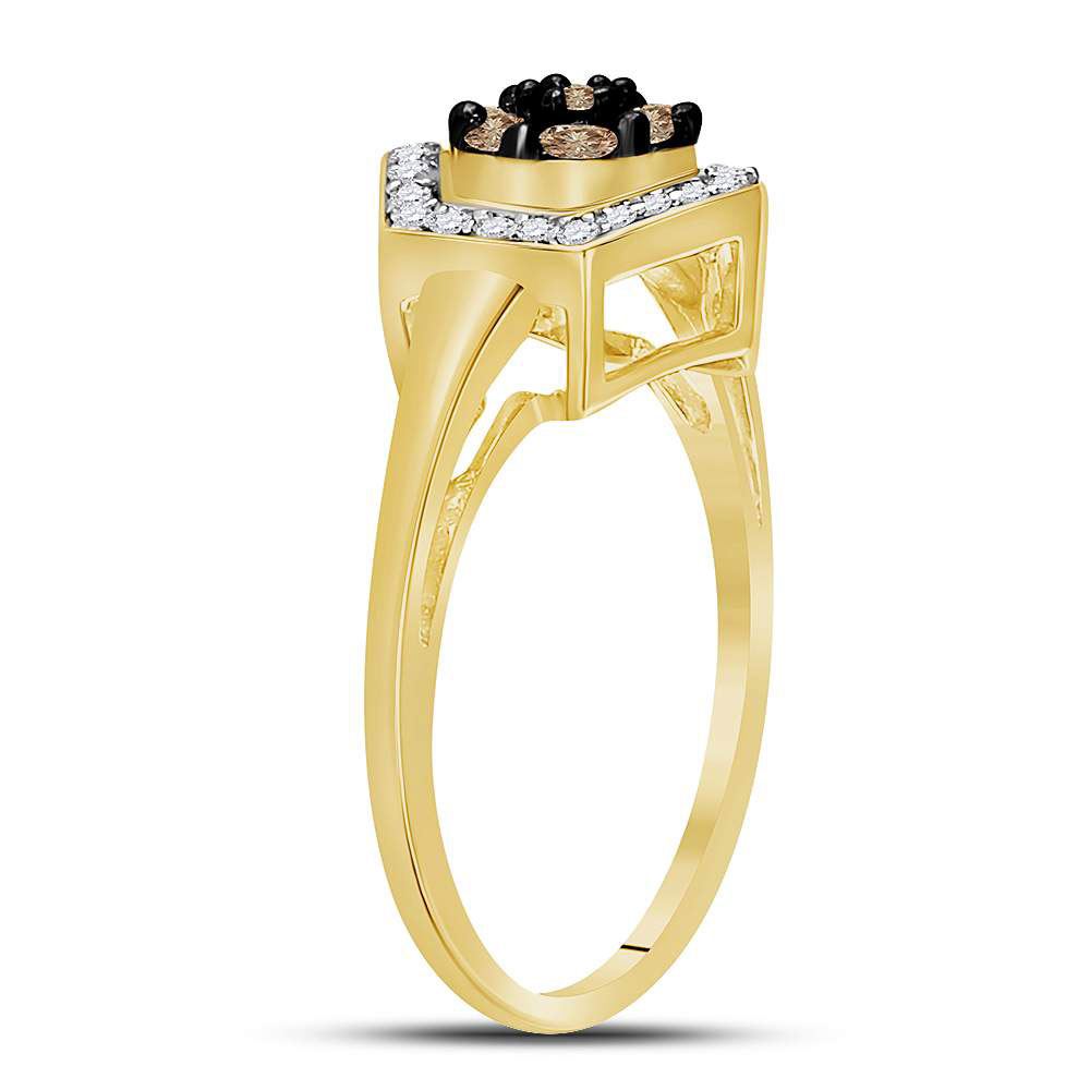 10kt Yellow Gold Womens Round Brown Diamond Polygon Cluster Ring 1/2 Cttw