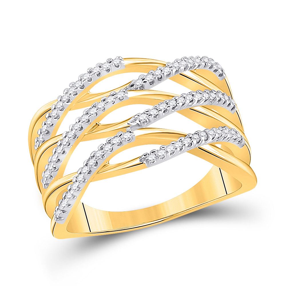 10kt Yellow Gold Womens Round Diamond Crossover Strand Band Ring 1/4 Cttw