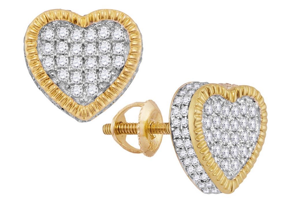 10kt Yellow Gold Womens Round Diamond Heart Rope Frame **|**|** 10kt Yellow Gold Womens Round Diamond Heart Rope Frame Cluster Earrings 3/4 Cttw