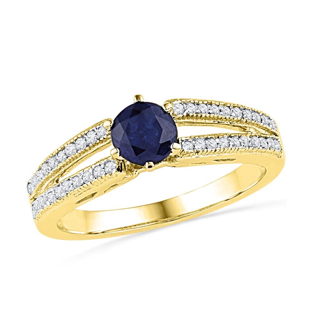 10kt Yellow Gold Womens Round Lab-Created Blue Sapphire **|**|** 10kt Yellow Gold Womens Round Lab-Created Blue Sapphire Solitaire Split-shank Ring 1/5 Cttw
