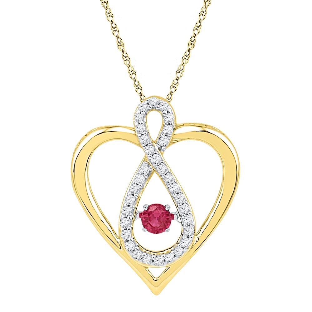10kt Yellow Gold Womens Round Lab-Created Ruby Diamond **|**|** 10kt Yellow Gold Womens Round Lab-Created Ruby Diamond Infinity Heart Pendant 1/4 Cttw