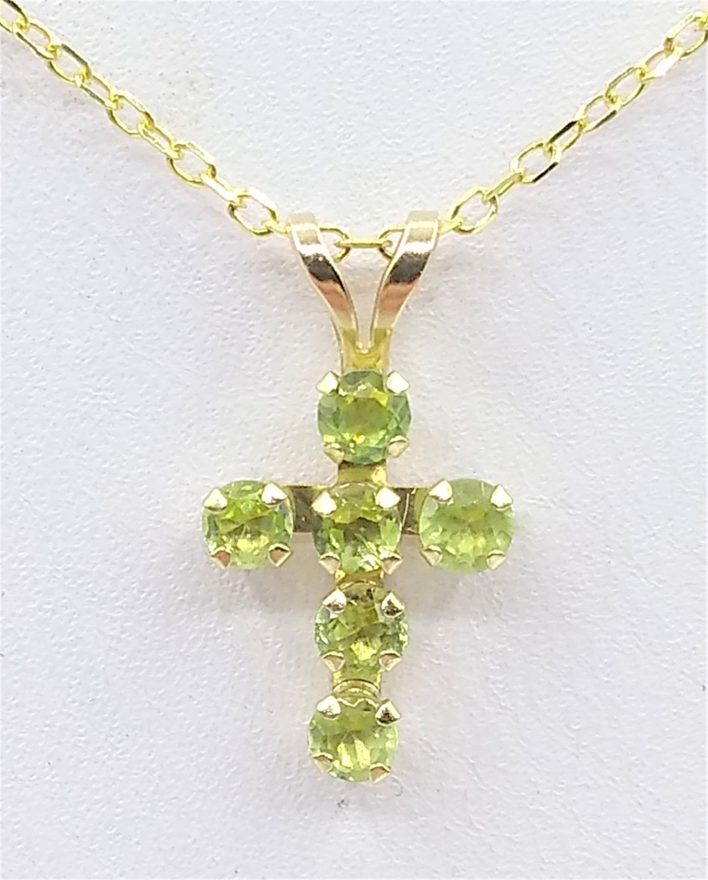 10kt. Yellow Gold genuine Peridot Cross Pendant with Sterling chain, 6 Peridot (0.42cts), W/A $865.0