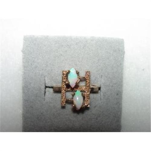 Unusual Attractive Hand Designed 10kt gold and double opal ring Size 6 1/2</em></td>