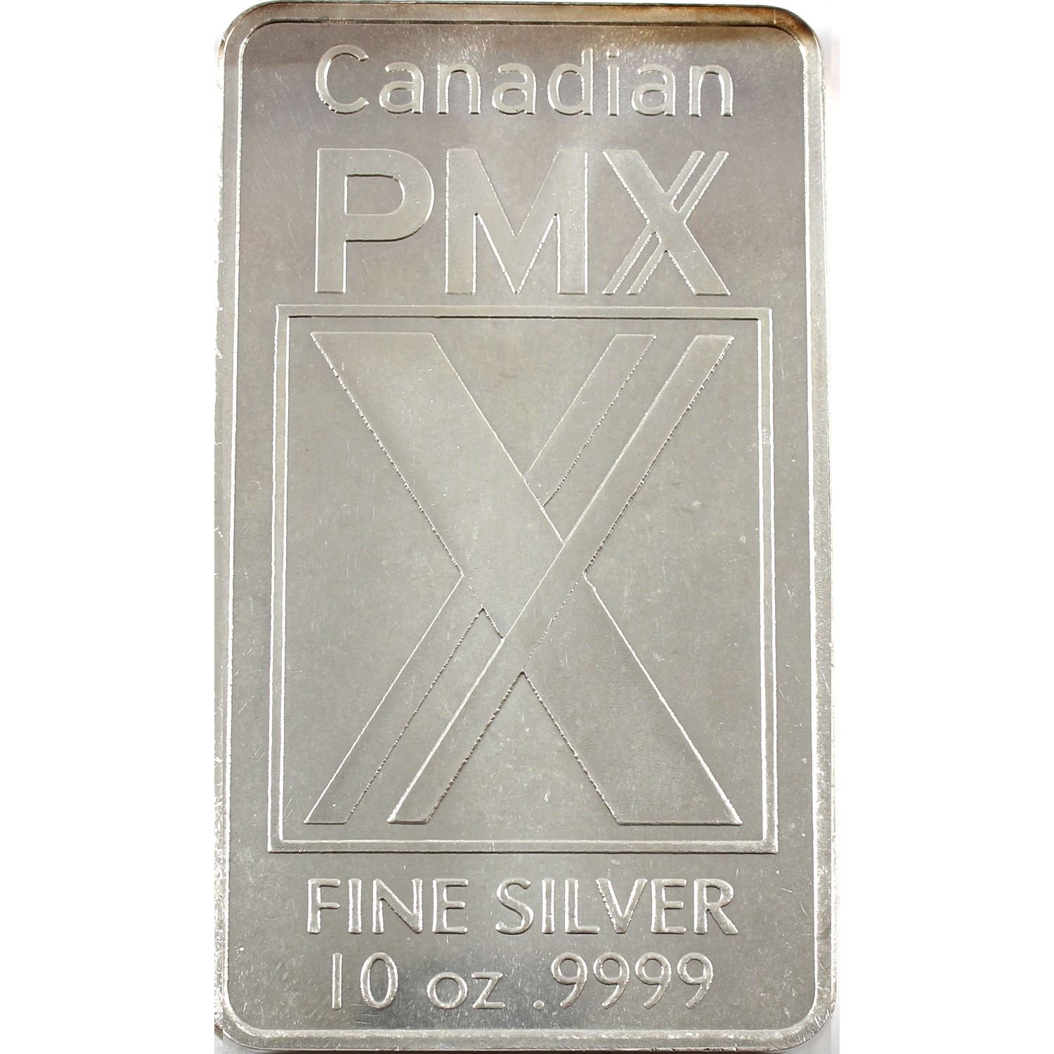 10oz Canadian PMX .9999 Fine Silver Bar (lightly toned). TAX Exempt
