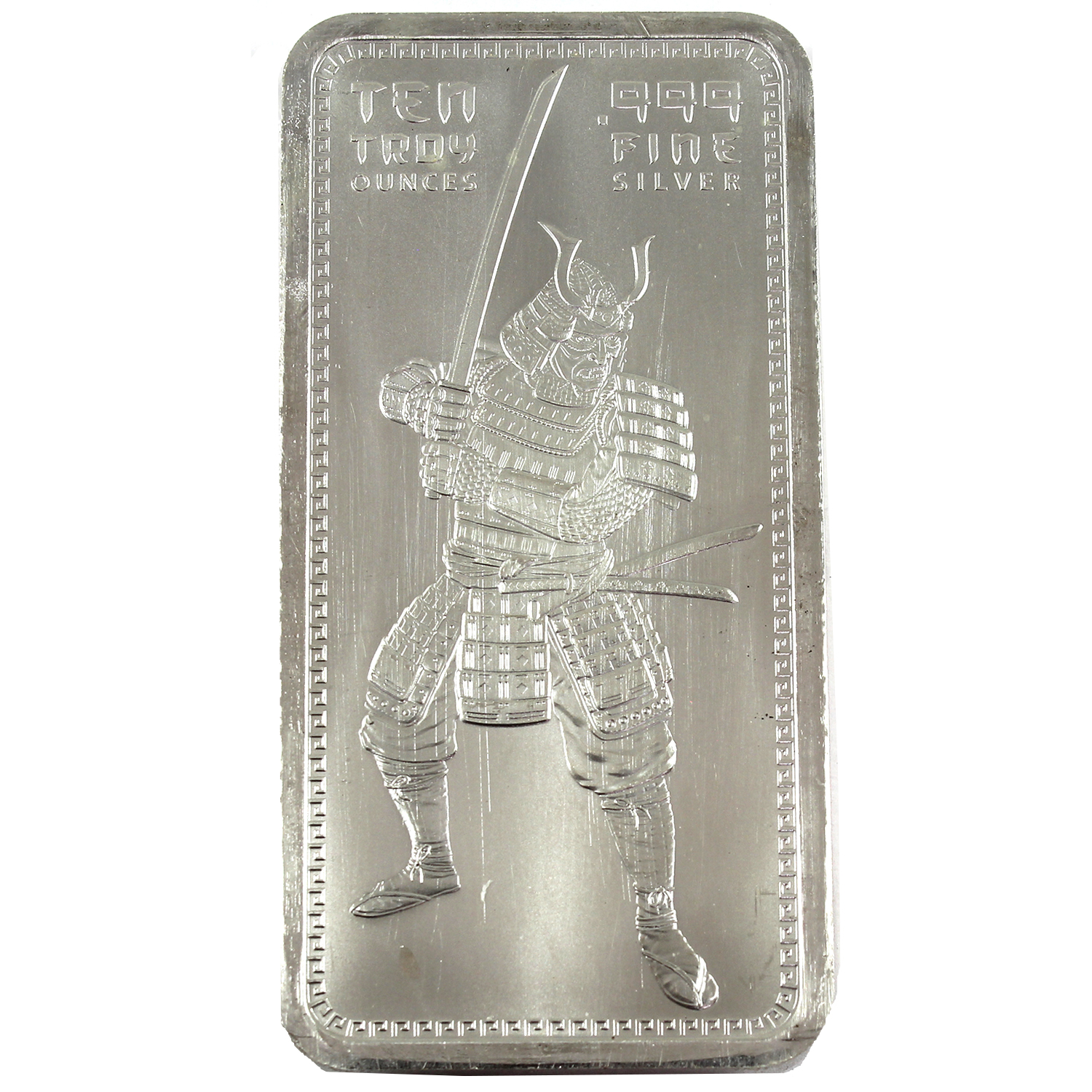 10oz Golden State Mint Samurai Warrior .999 Fine Silver Bar (Tax Exempt)