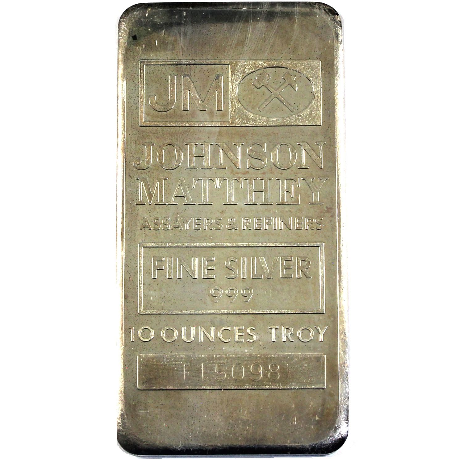 10oz Johnson Matthey .999 Fine Silver Bar (Toned). TAX Exempt