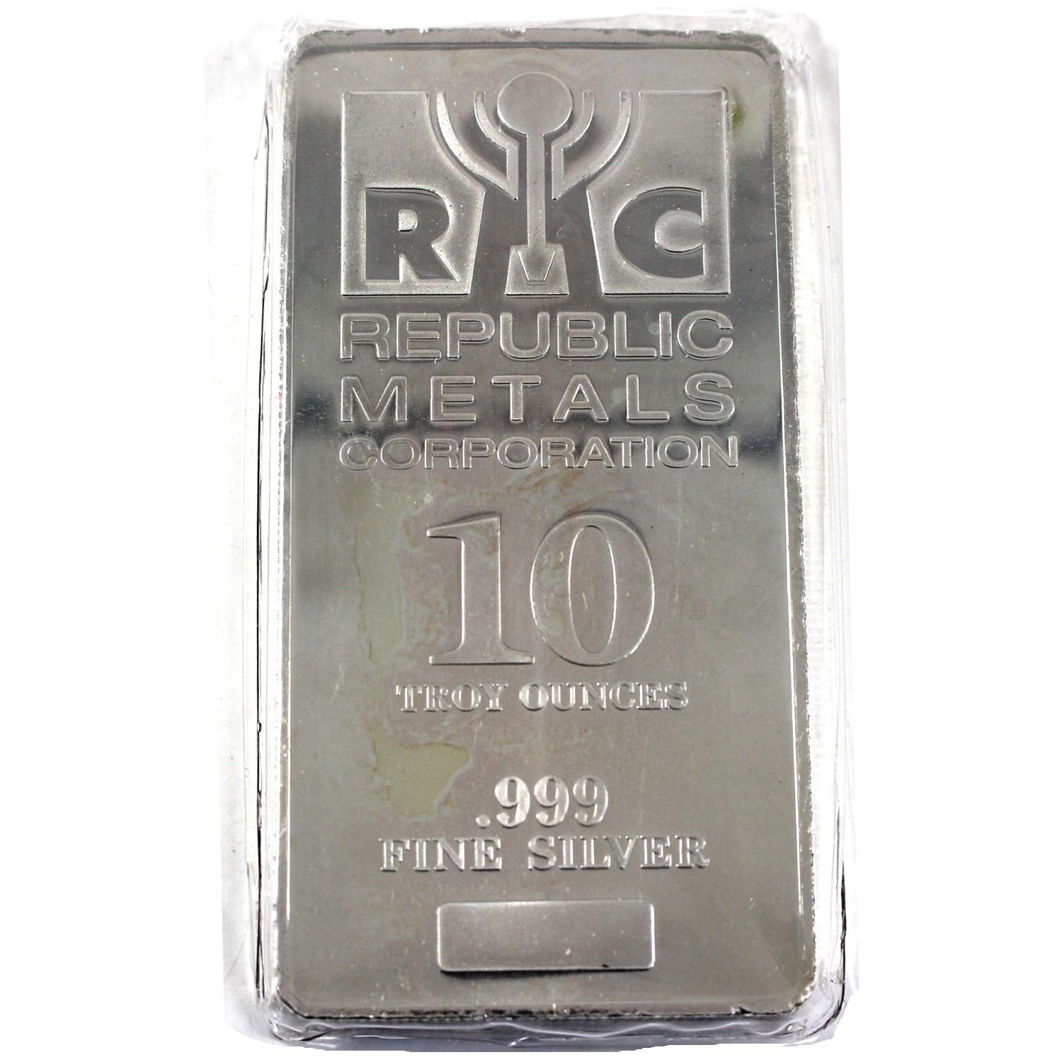 10oz Republic Metals Corporation .999 Fine Silver Bar in Mint Plastic. (TAX Exempt)