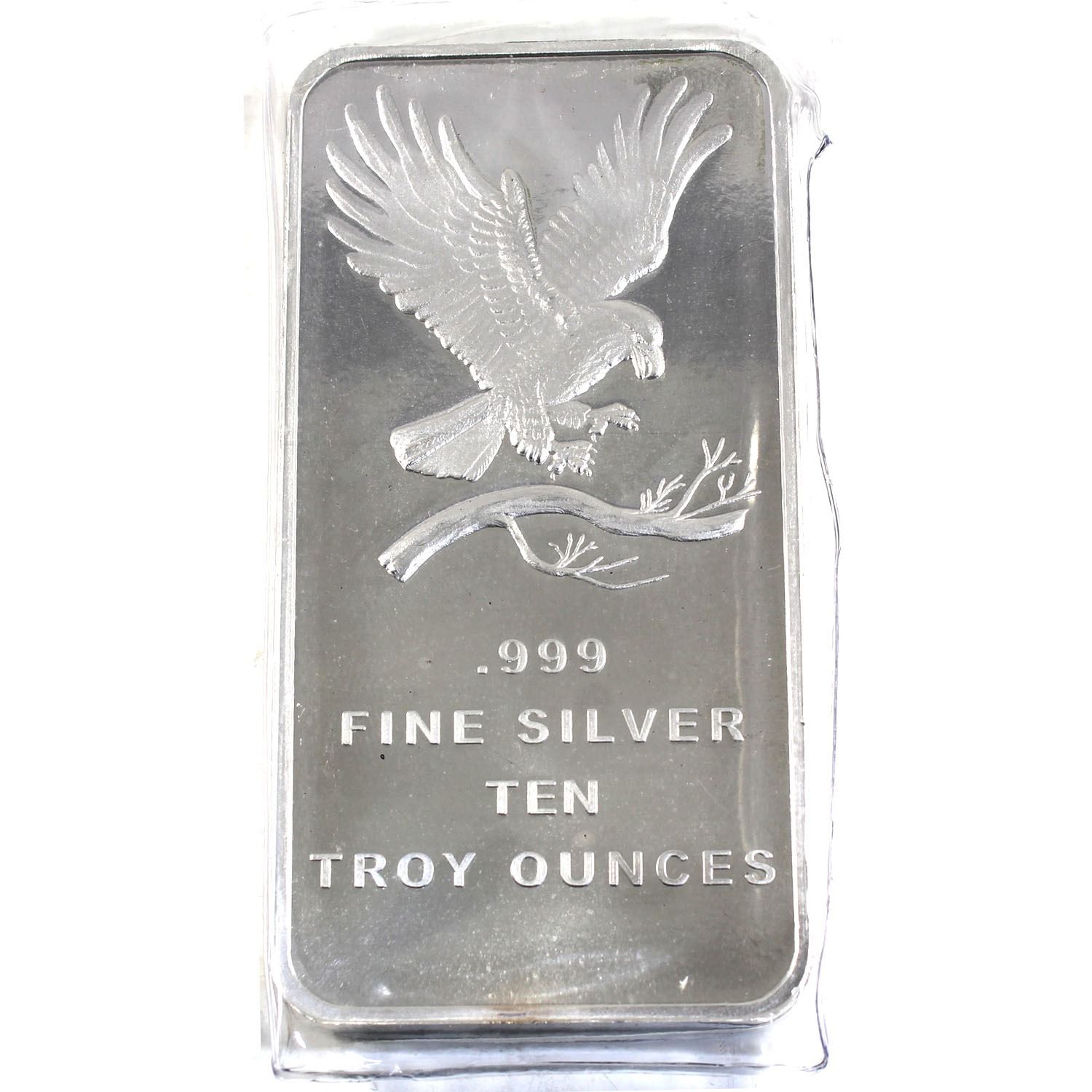 10oz Silvertowne .999 Fine Silver Eagle Design Bar in Sealed Plastic (TAX Exempt).