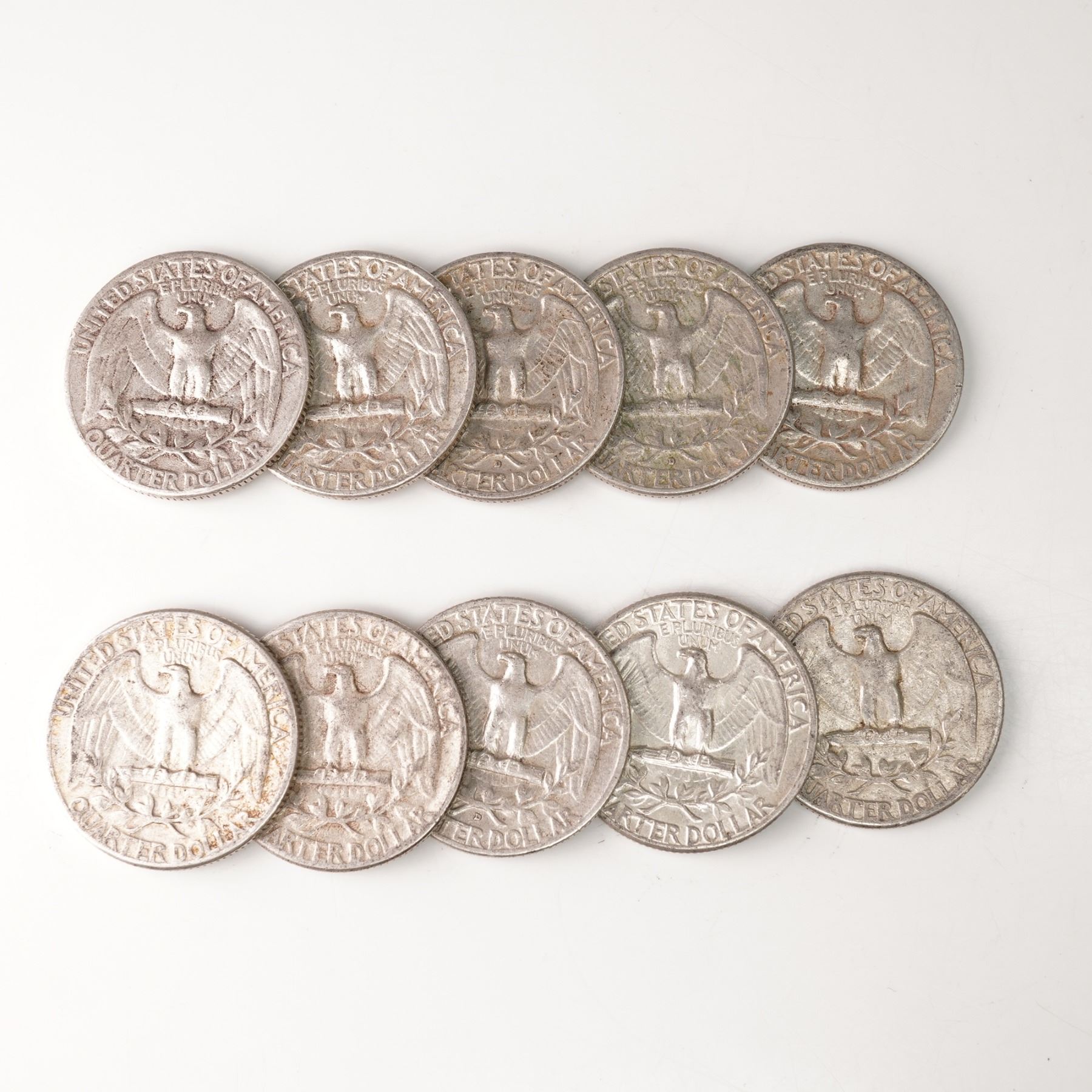 10pc 1955 to 1959 Washington Silver Quarters