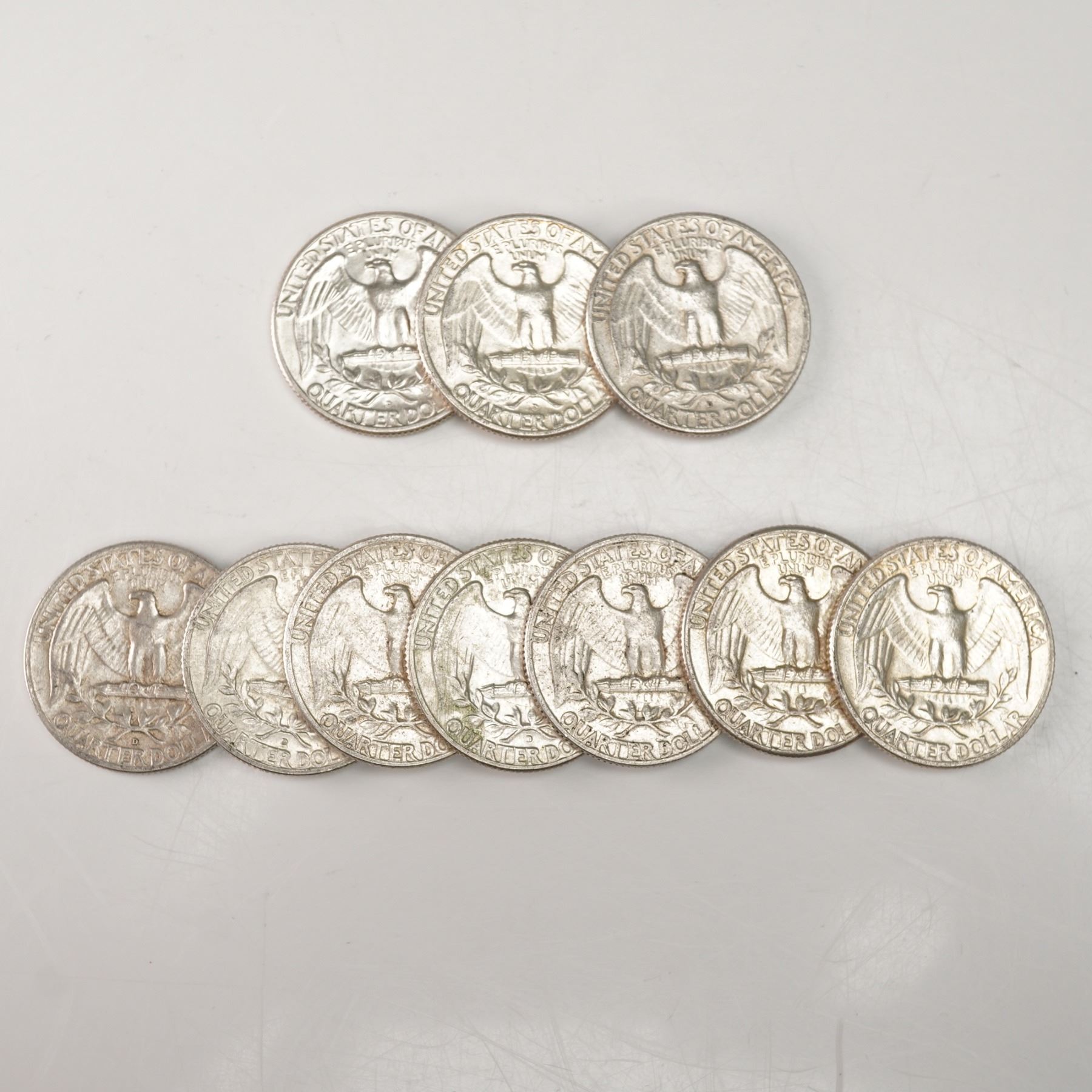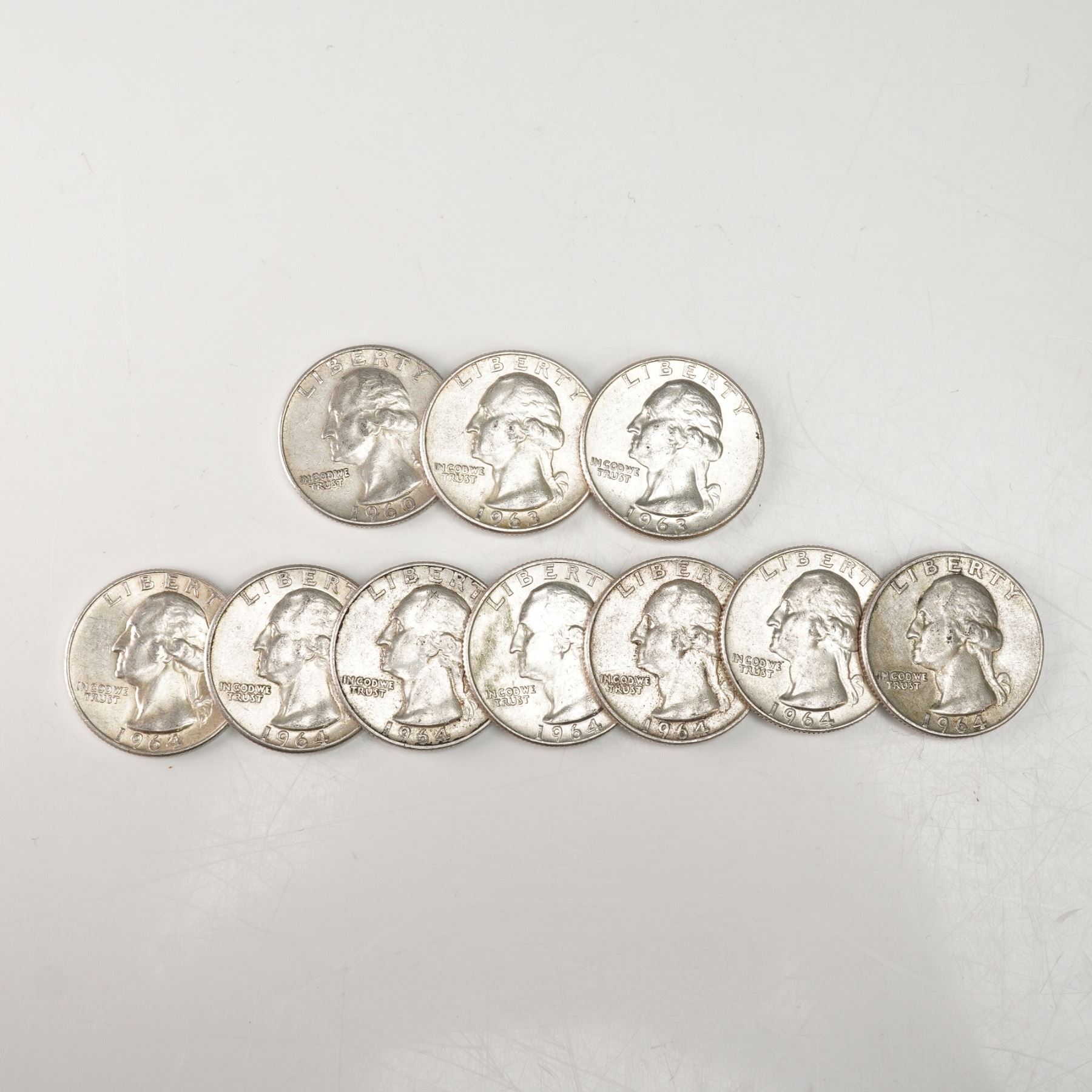 10pc 1960-D to 1964-D Washington Silver Quarters