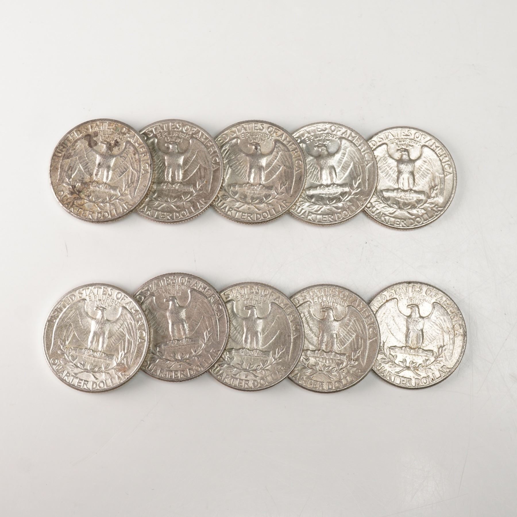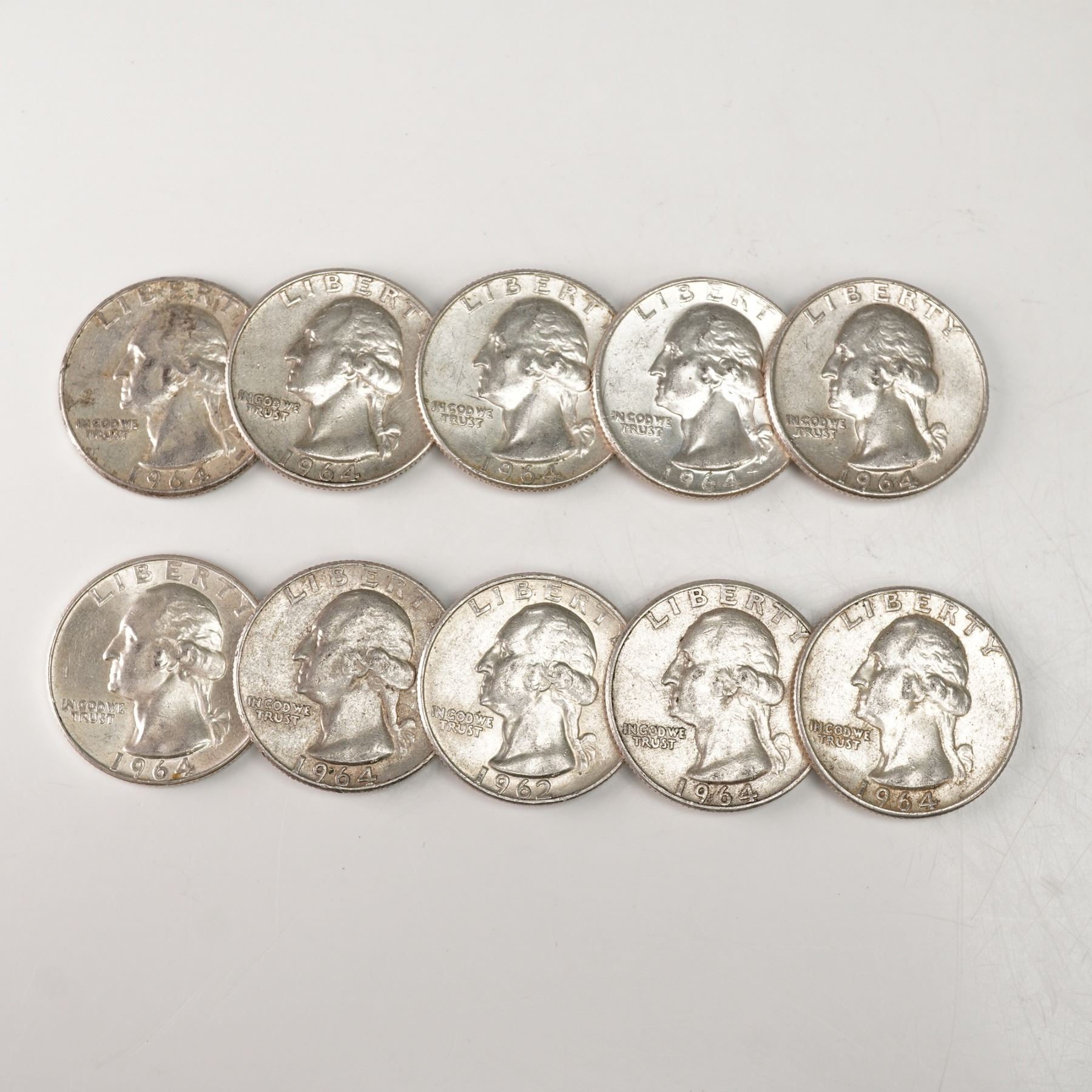 10pc 1962 to 1964-D Washington Silver Quarters