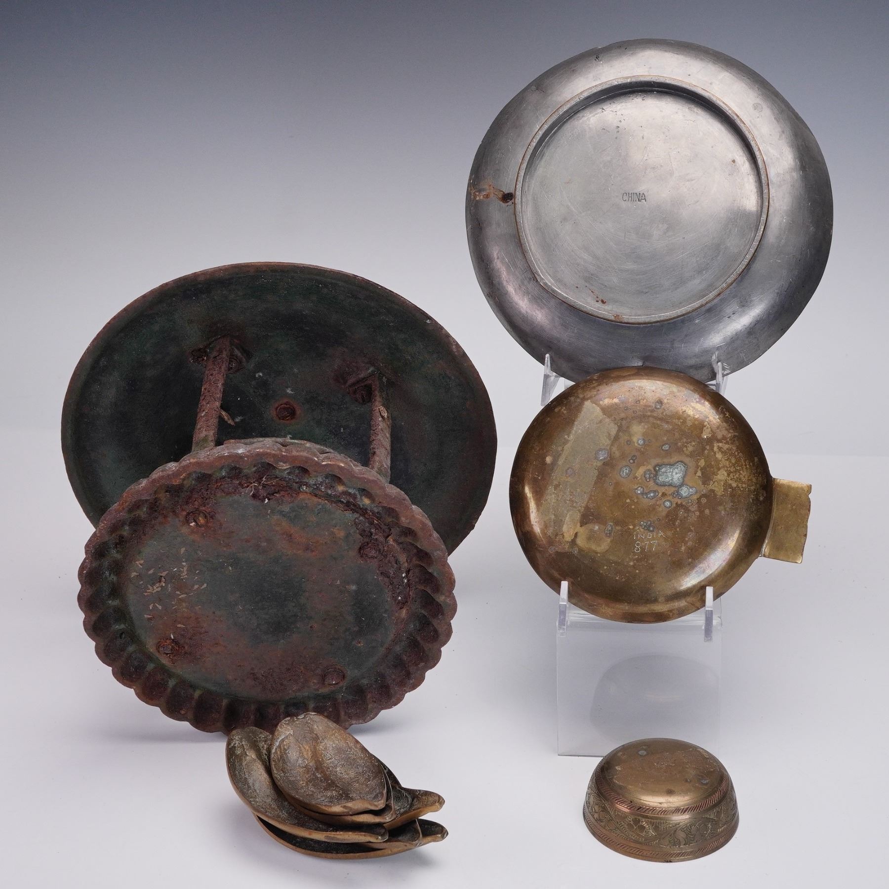 10pc Vintage Asian Mixed Metal Decor Including Hanging Lantern