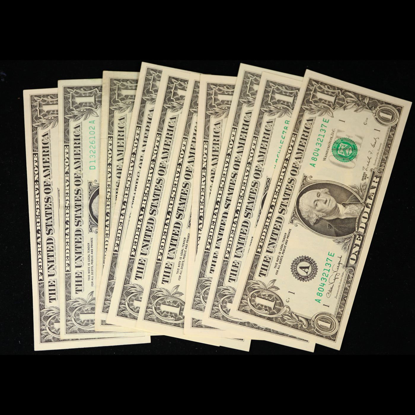 10x Mixed $1 Federal Reserve Notes, Series 1963 to 2009, All CU Grade! Grades Brilliant Uncirculated