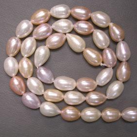 MULTICOLOR FRESH WATER PEARL STRING. EACH PEARL MEASURES 10x8 MM APPROX. LENGTH: 16 INCHES