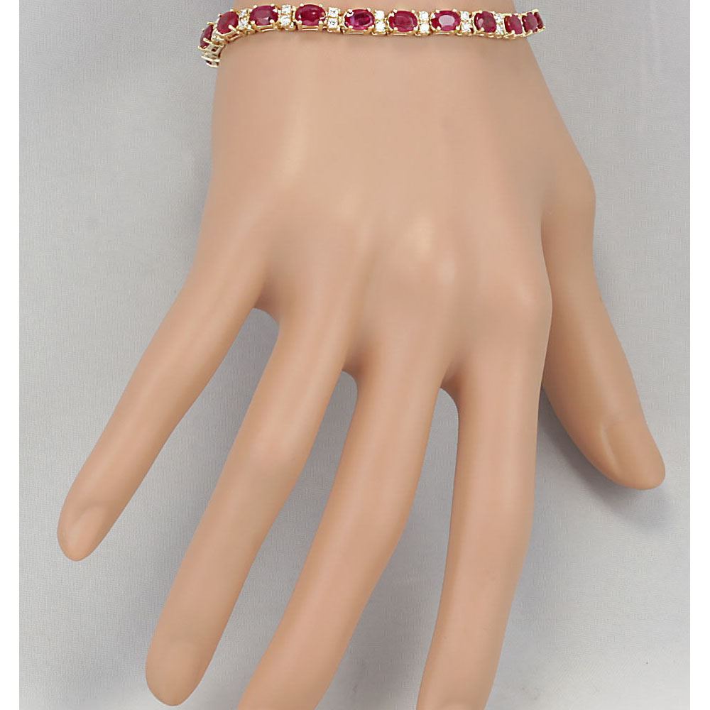 11.01 CTW Natural Ruby And Diamond Bracelet In 14K Yellow Gold