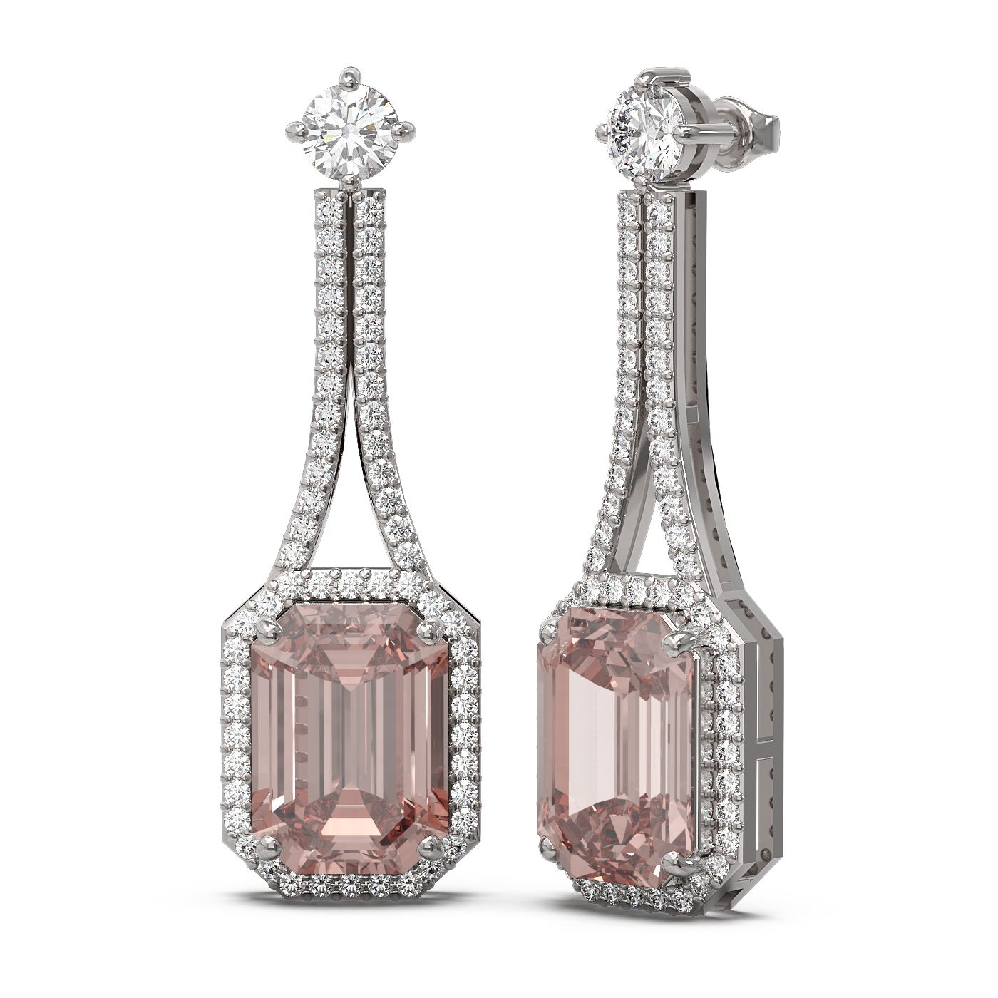 REF-507F3M - SKU: 53245 ---- 11.01 ctw Morganite & Diamond Earrings 18K White Gold