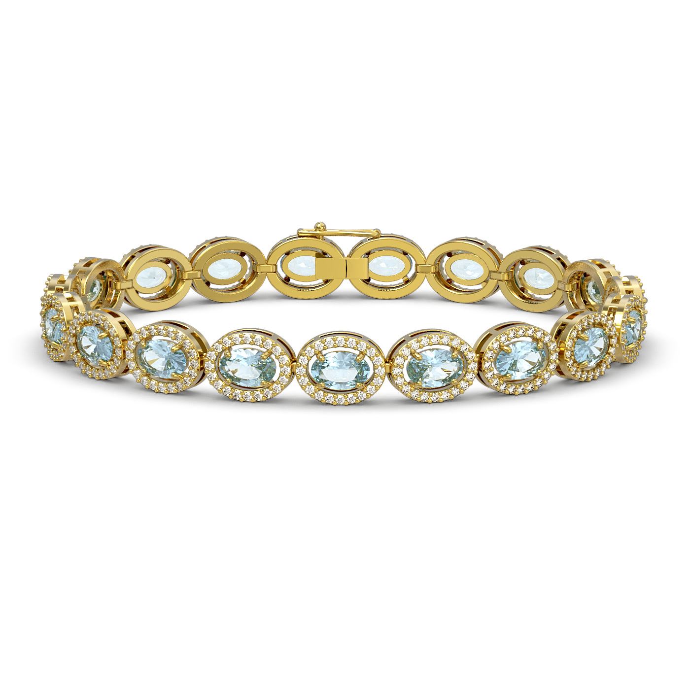 REF-309H3R - SKU: 40477 ---- 11.02 ctw Aquamarine & Diamond Micro Pave Halo Bracelet 10k Yellow Gold