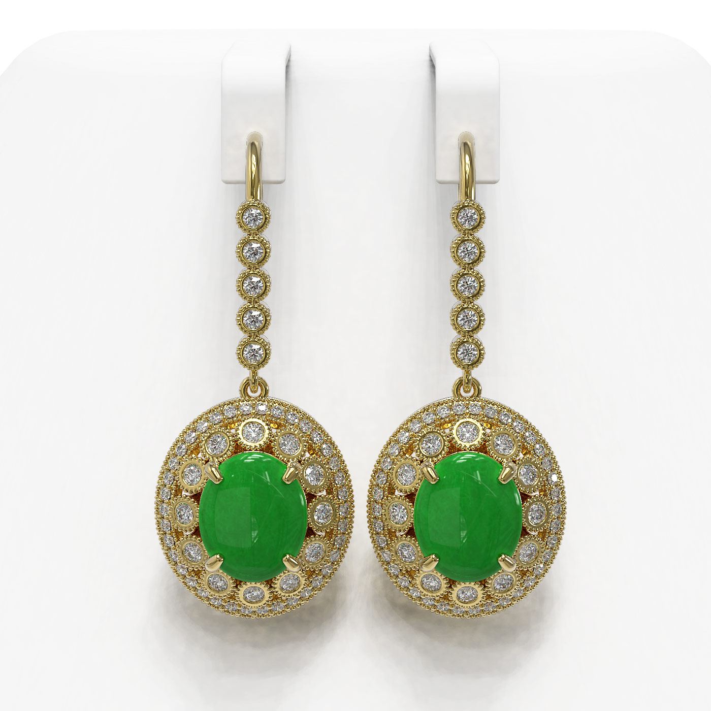 11.02 ctw Jade & Diamond Earrings 14K Yellow Gold