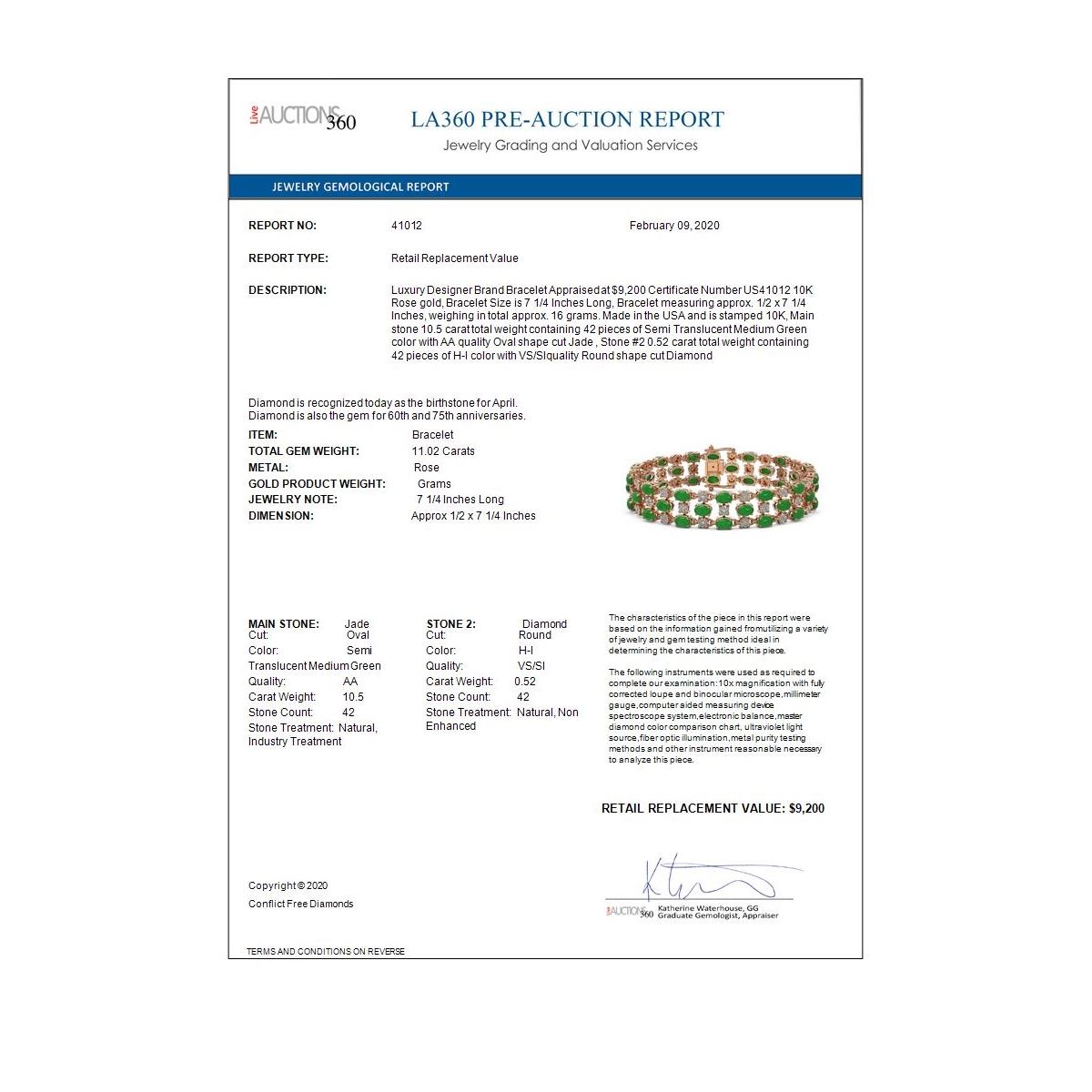 REF-209A3N - SKU: 41012 ---- 11.02 ctw Jade & Diamond Row Bracelet 10K Rose Gold