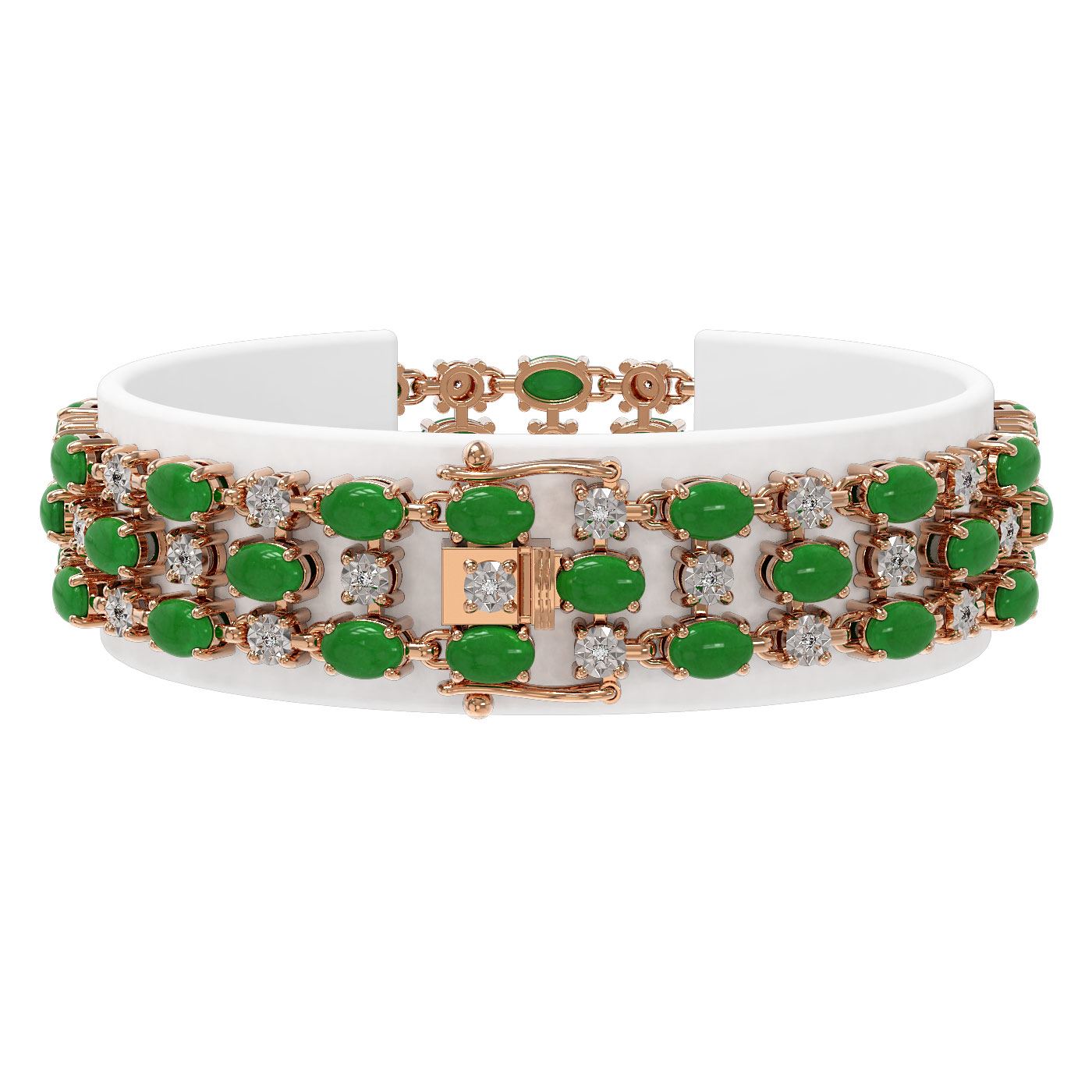 REF-209A3N - SKU: 41012 ---- 11.02 ctw Jade & Diamond Row Bracelet 10K Rose Gold
