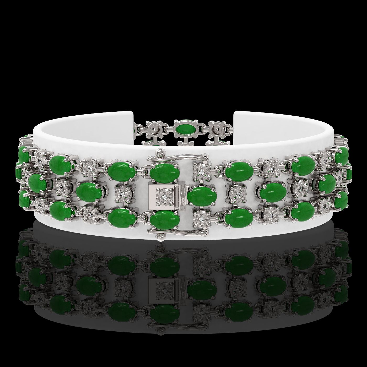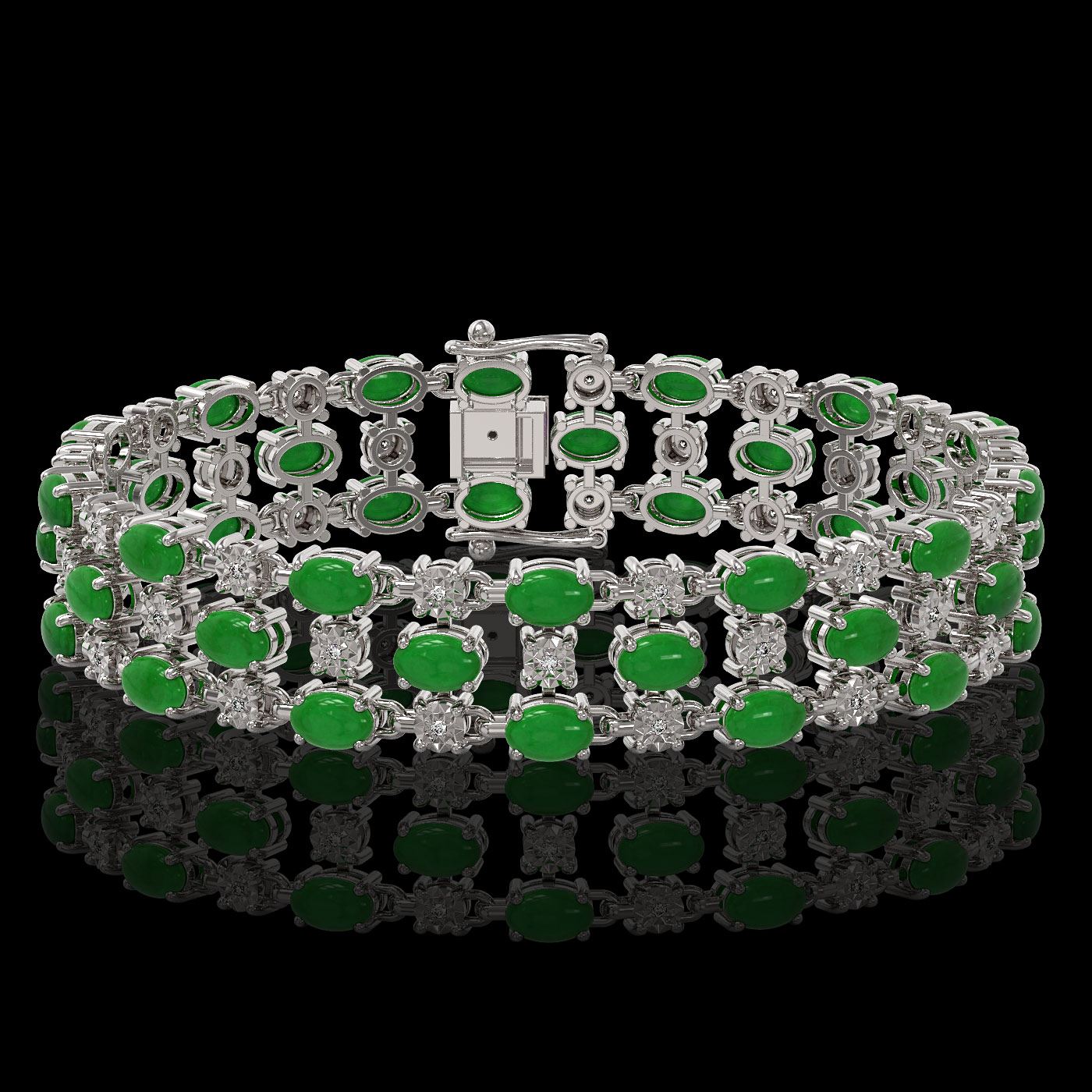 REF-209W3H - SKU: 41011 ---- 11.02 ctw Jade & Diamond Row Bracelet 10K White Gold