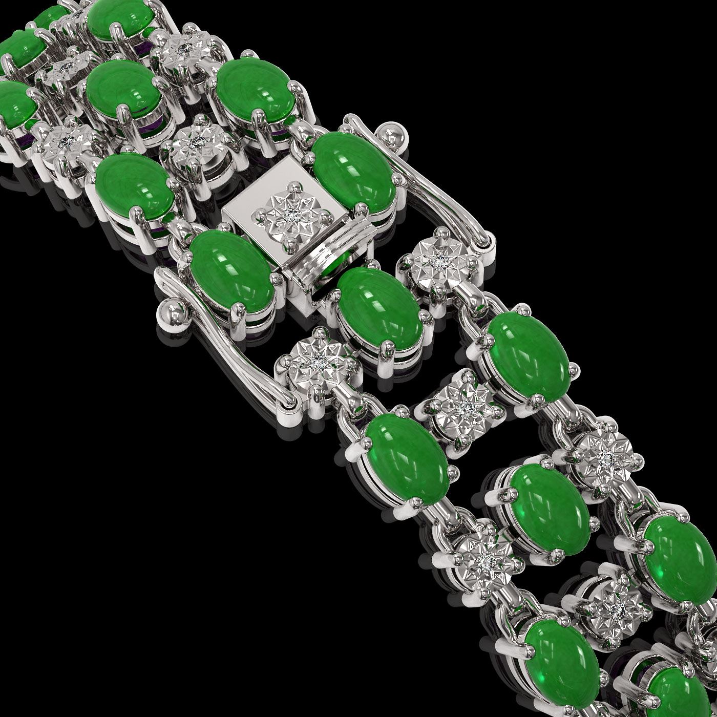 SKU: 41011 ---- 11.02 ctw Jade & Diamond Row Bracelet 10K White Gold