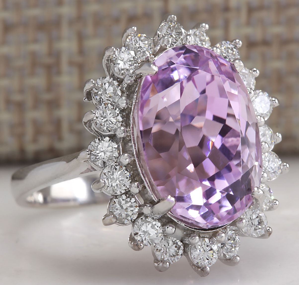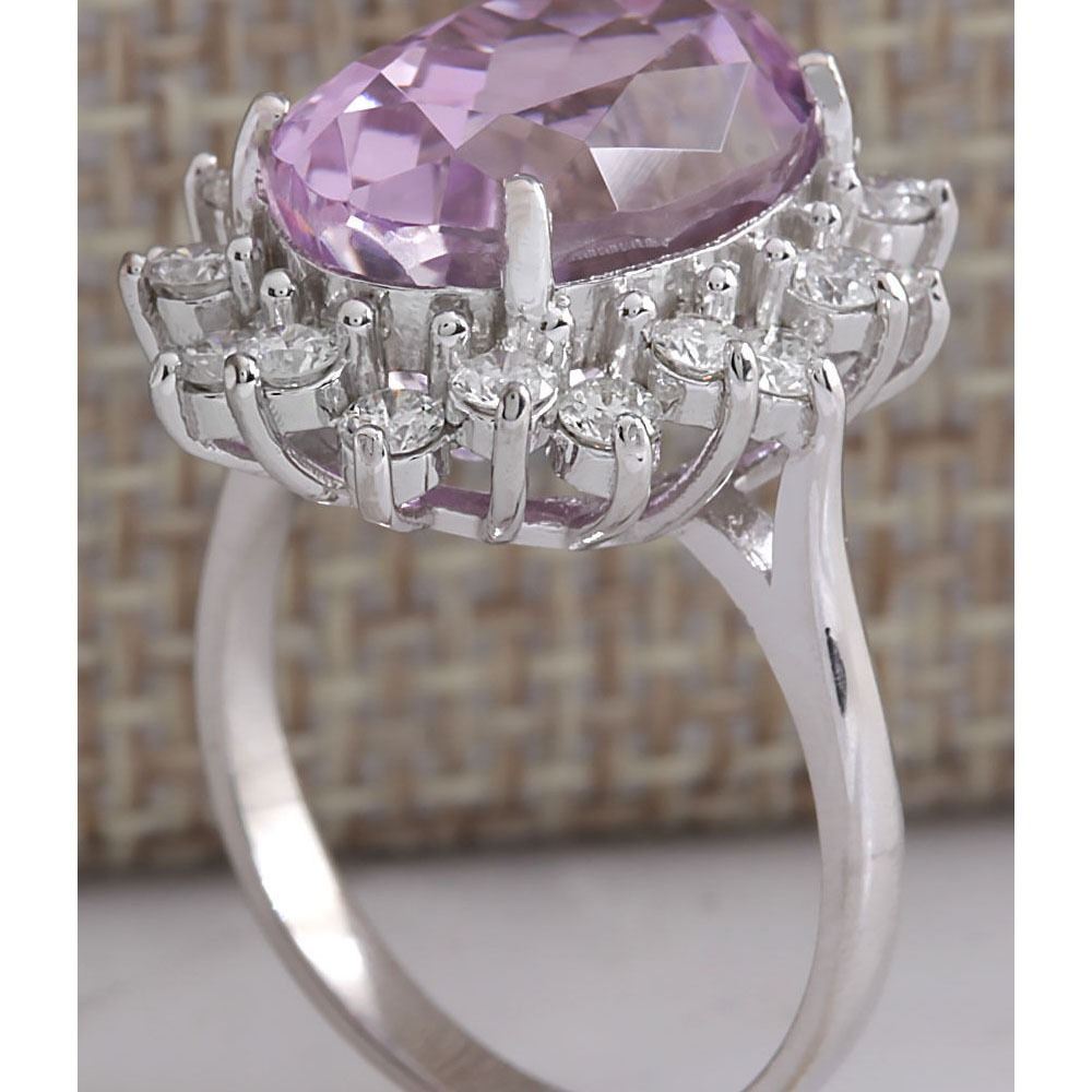11.03 CTW Natural Pink Kunzite And Diamond Ring In 14K White Gold