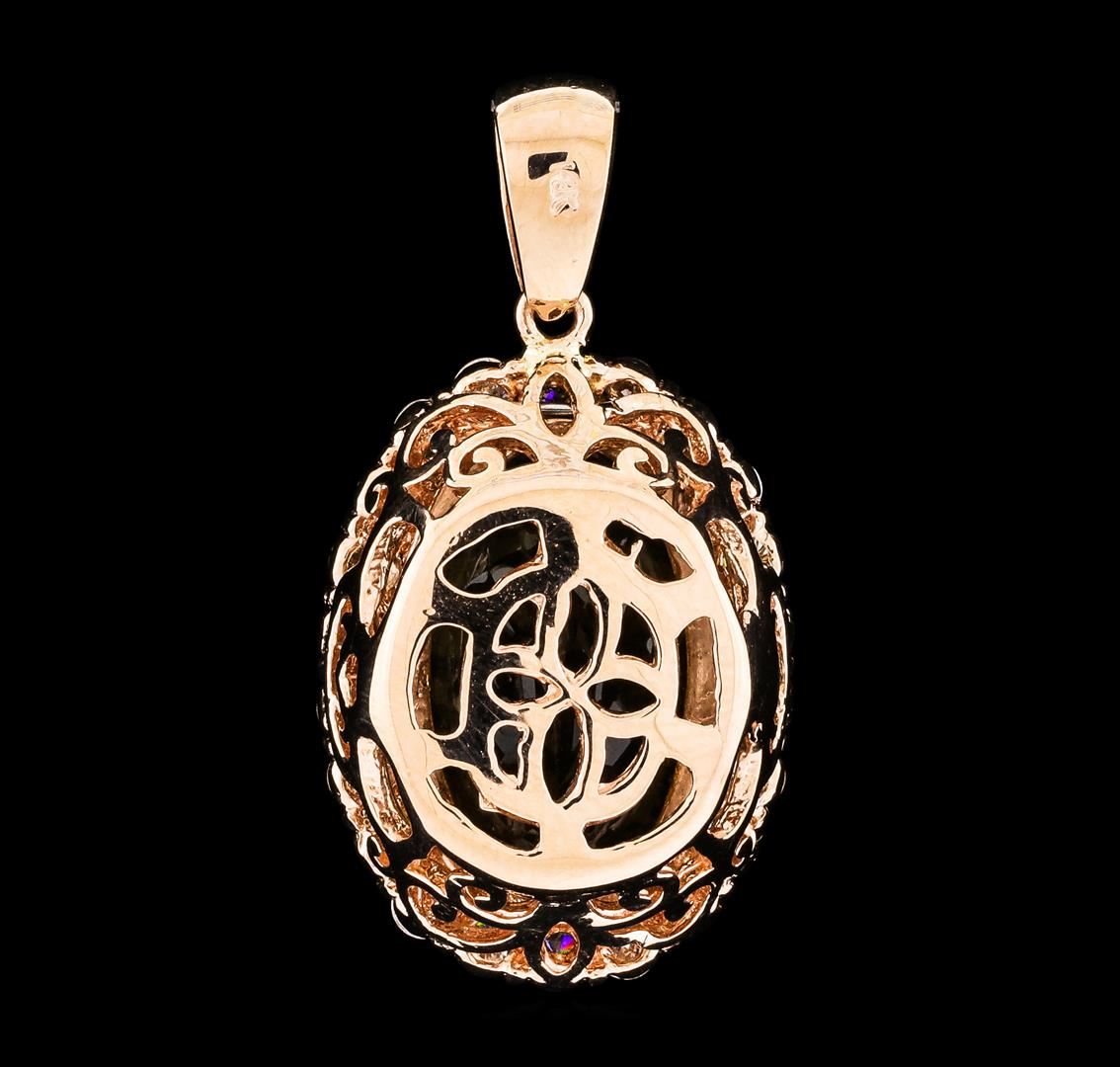 One Citrine and Diamond Pendant featuring: 14KT Rose Gold with a total weight of 6.00 grams, Citrine with a total weight of 11.03ct, and side diamonds with a total weight of 1.10ctw.
