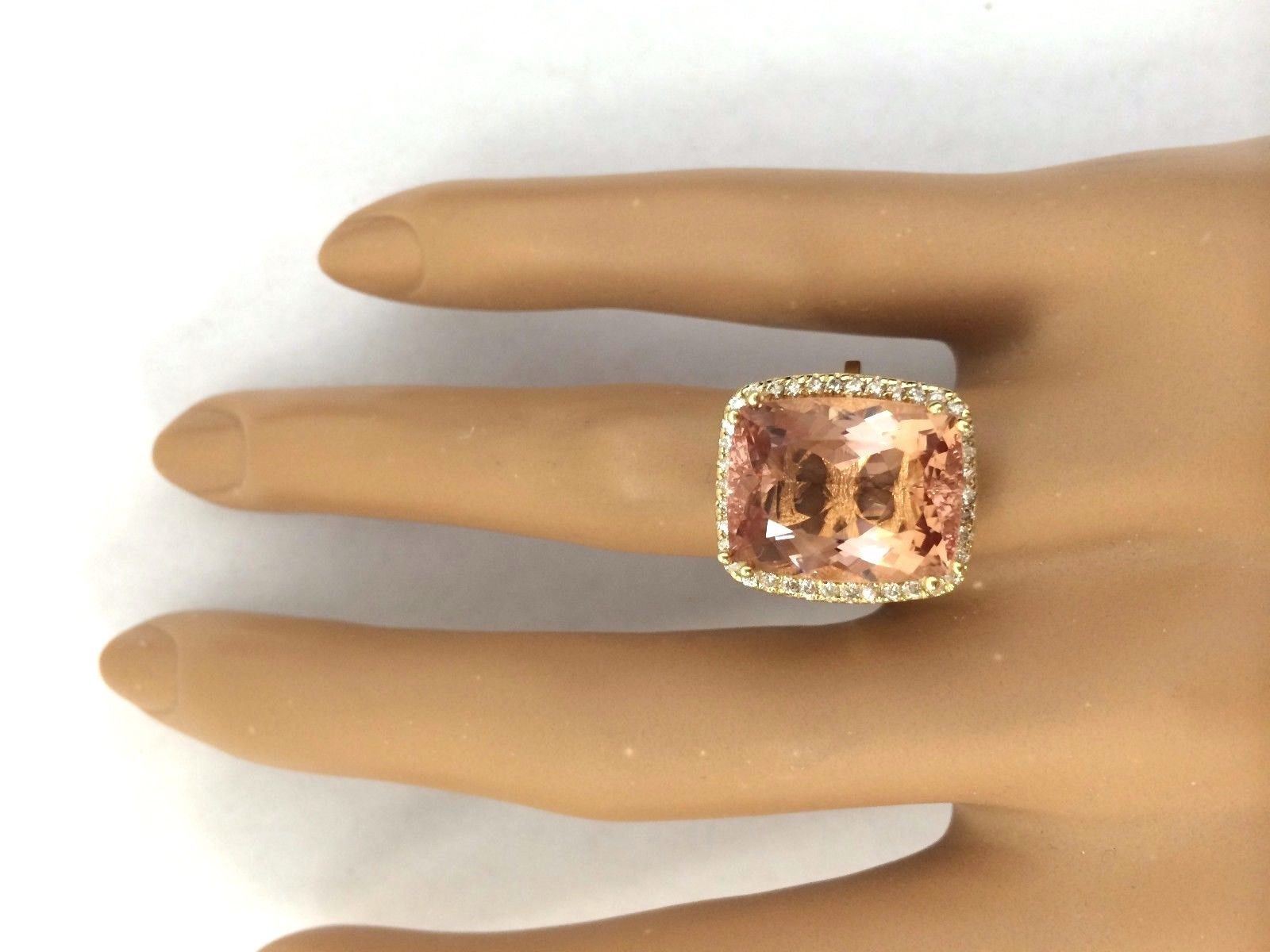 11.04 Carat Natural Morganite 14K Solid Yellow Gold Diamond Ring