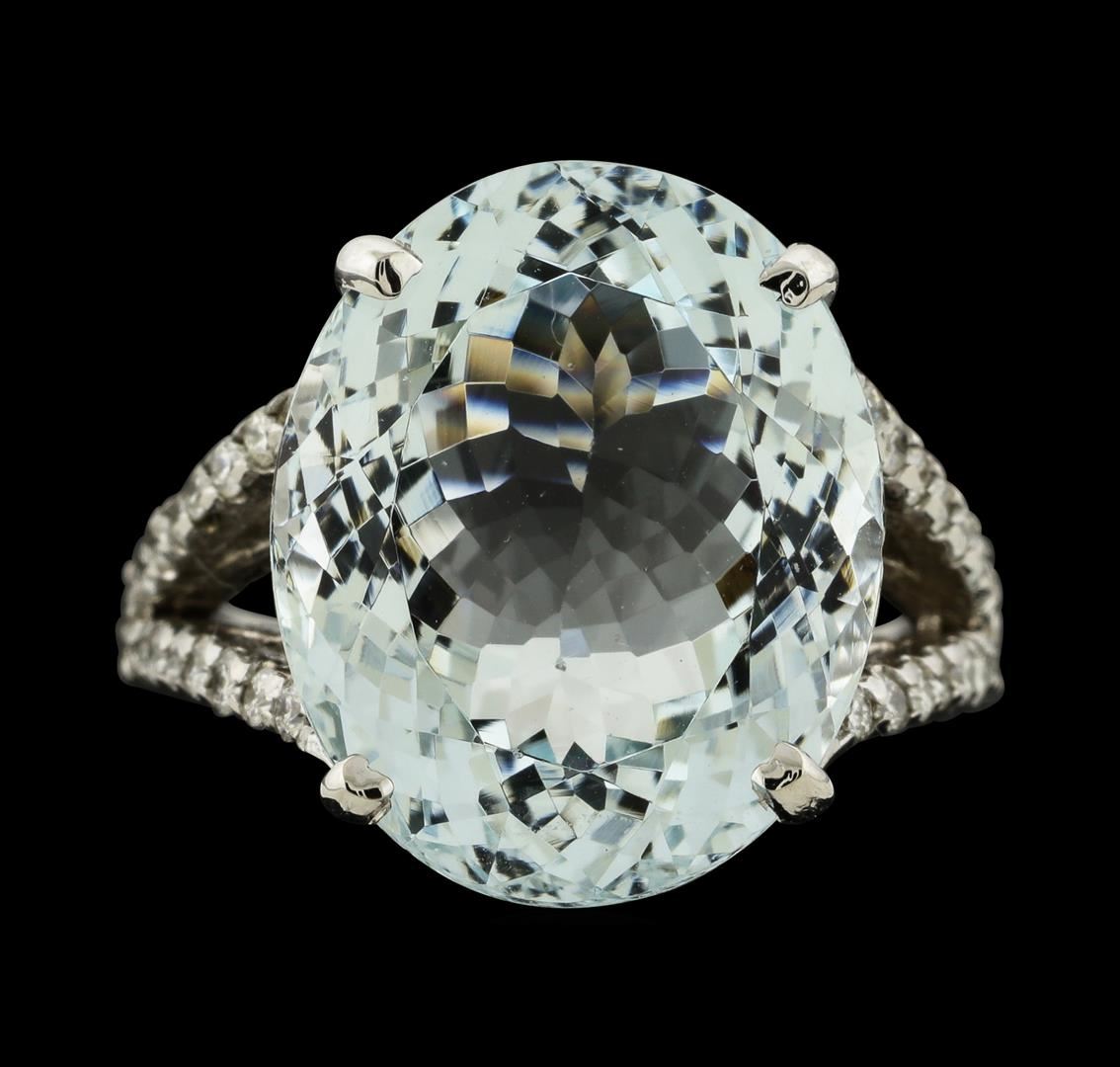 One ring : 14KT white gold weighing 5.40gm containing aquamarine with a total weight of 11.04ct and diamonds weighing 0.38ctw.