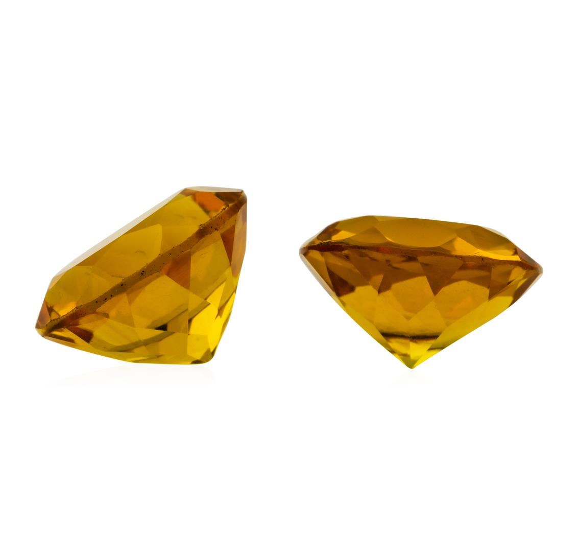 One natural round cut citrine quartz parcel of two with an exact weight of 11.05ctw., clarity is eye clean, yellowish orange, medium dark. Gemological Appraisals Services estimates the retail value at $442 GAS Appraised.