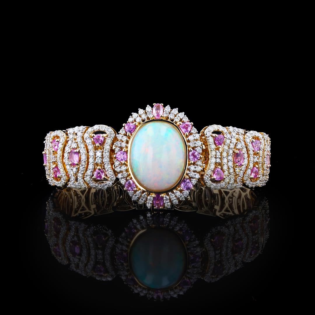 11.07 ctw Opal, 6.81 ctw Pink Sapphire and 13.12 ctw Diamond 14K Yellow Gold Bra