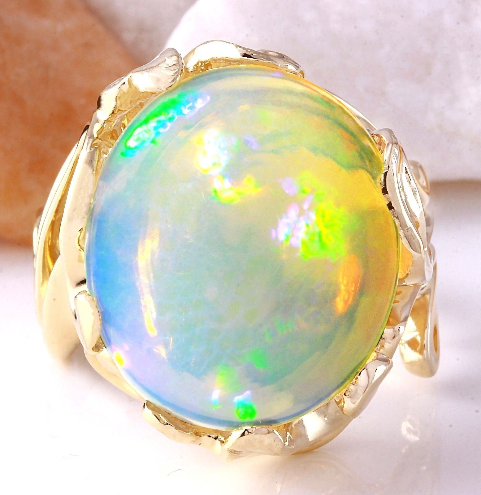 11.08 Carat Natural Opal 14K Solid Yellow Gold Ring