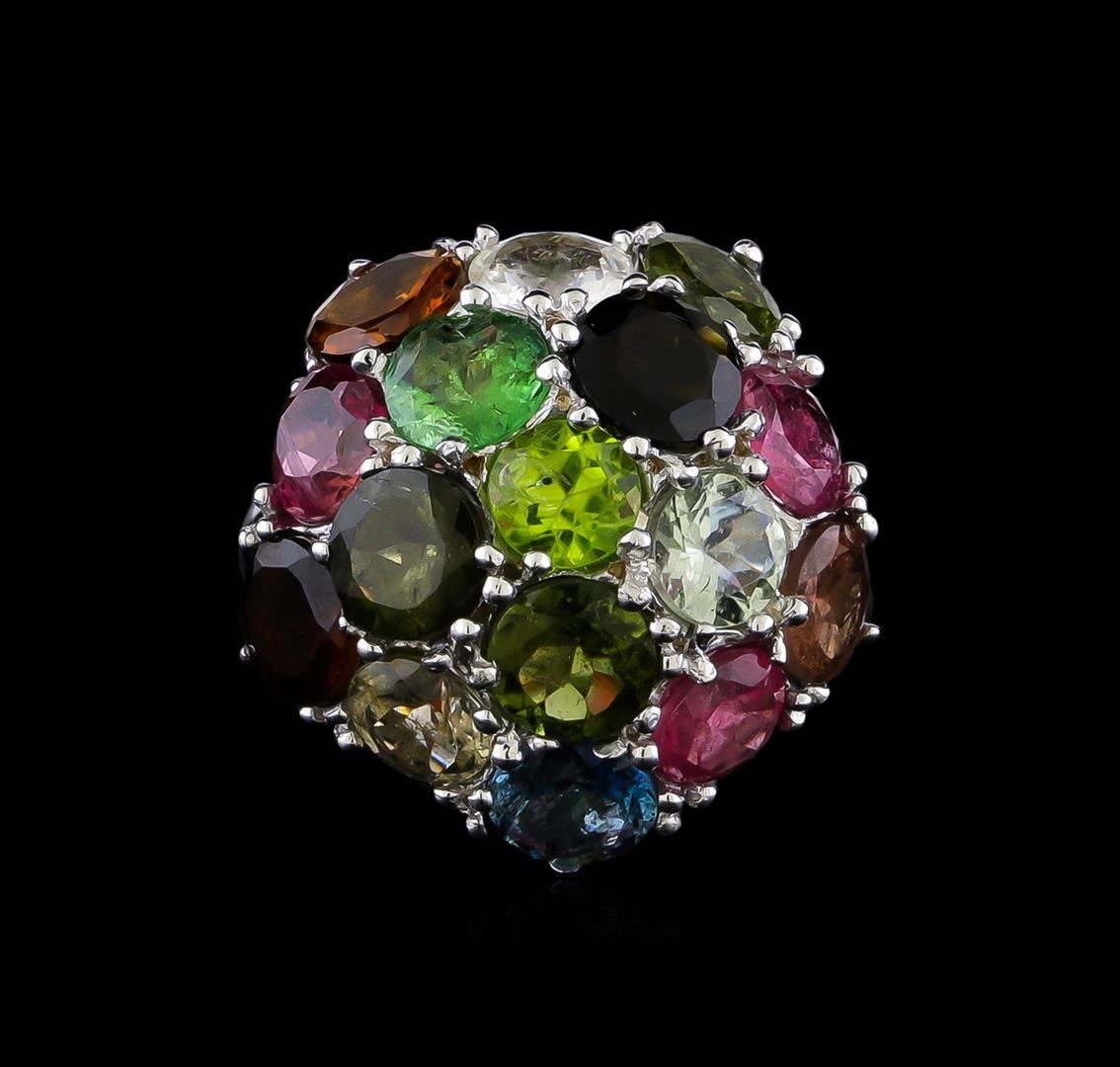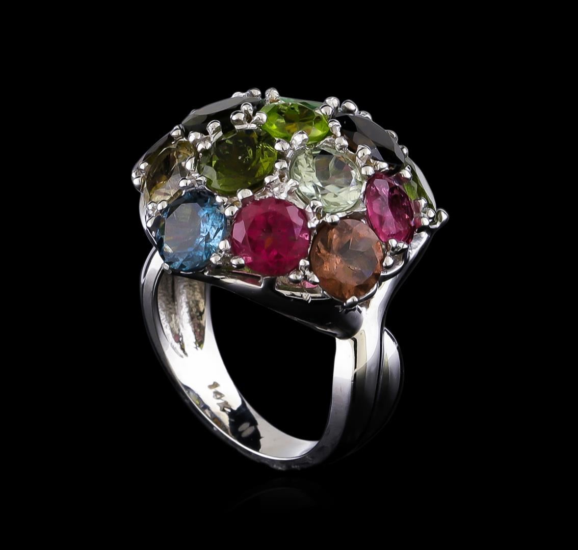 One ring featuring: 14KT white gold weighing 8.34 grams containing 16 tourmalines weighing 11.08ctw.