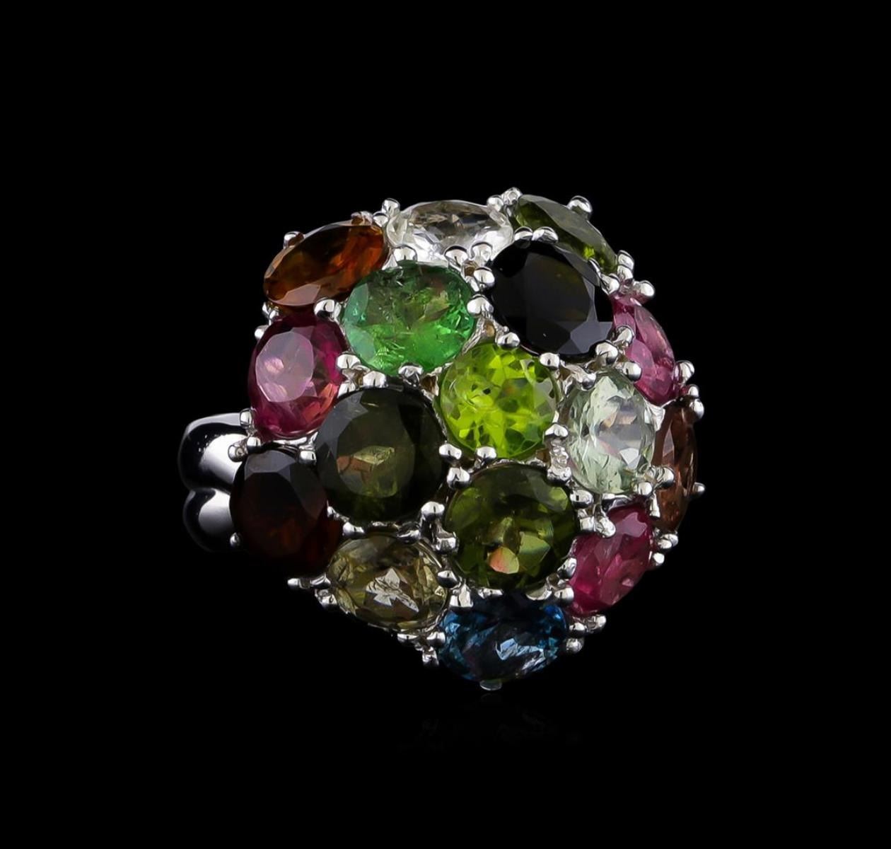 One ring featuring: 14KT white gold weighing 8.34 grams containing 16 tourmalines weighing 11.08ctw.