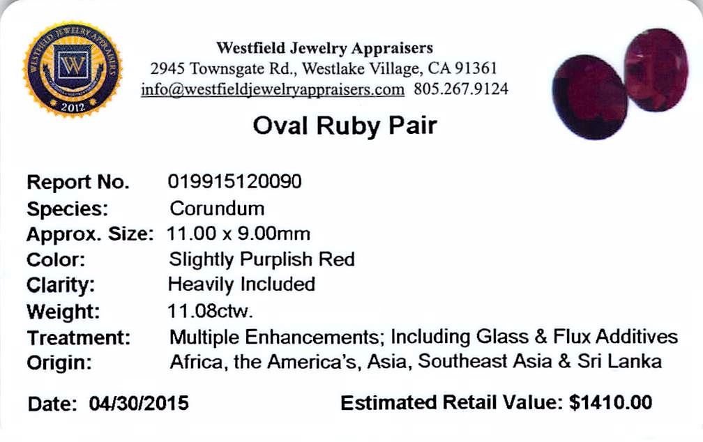 Two oval mixed cut natural rubies exact total weight 11.08ct., clarity is heavily included, type II, dark, very slightly brownish, slightly purplish red color, (GIA slpR 7/3), cut is good. Westfield Appraised at $1,410.00.