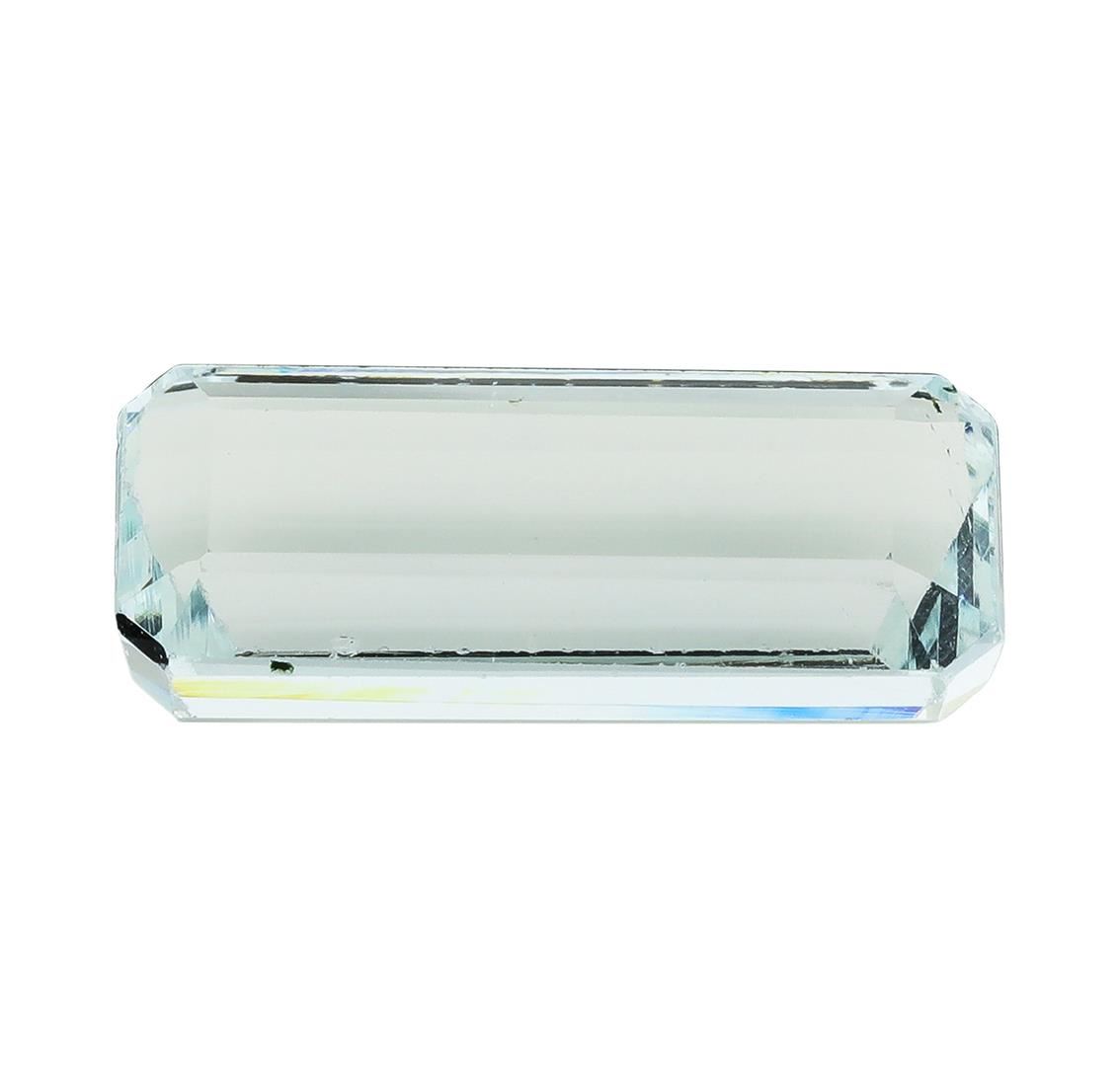 One natural emerald cut aquamarine with an exact weight of 11.09ct., clarity is eye clean, slightly grayish greenish blue, light. Gemological Appraisals Services estimates the retail value at $3160.65 GAS Appraised.